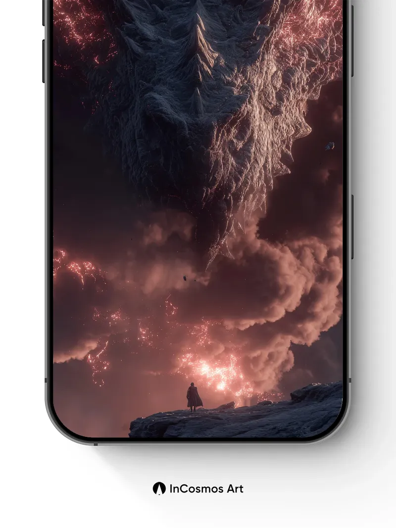Debug product.metafields.custom.desc: Did you know that ancient myths describe dragons as guardians of cosmic balance? Here, a colossal obsidian beast breathes molten crimson light into the storm-churned sky, its scales like fractured ice glowing with inner fire. Below, a lone figure stands on a jagged cliff, dwarfed by the scale of myth and nature entwined—your gaze drawn not just to the monster, but to the quiet courage in solitude beneath it.