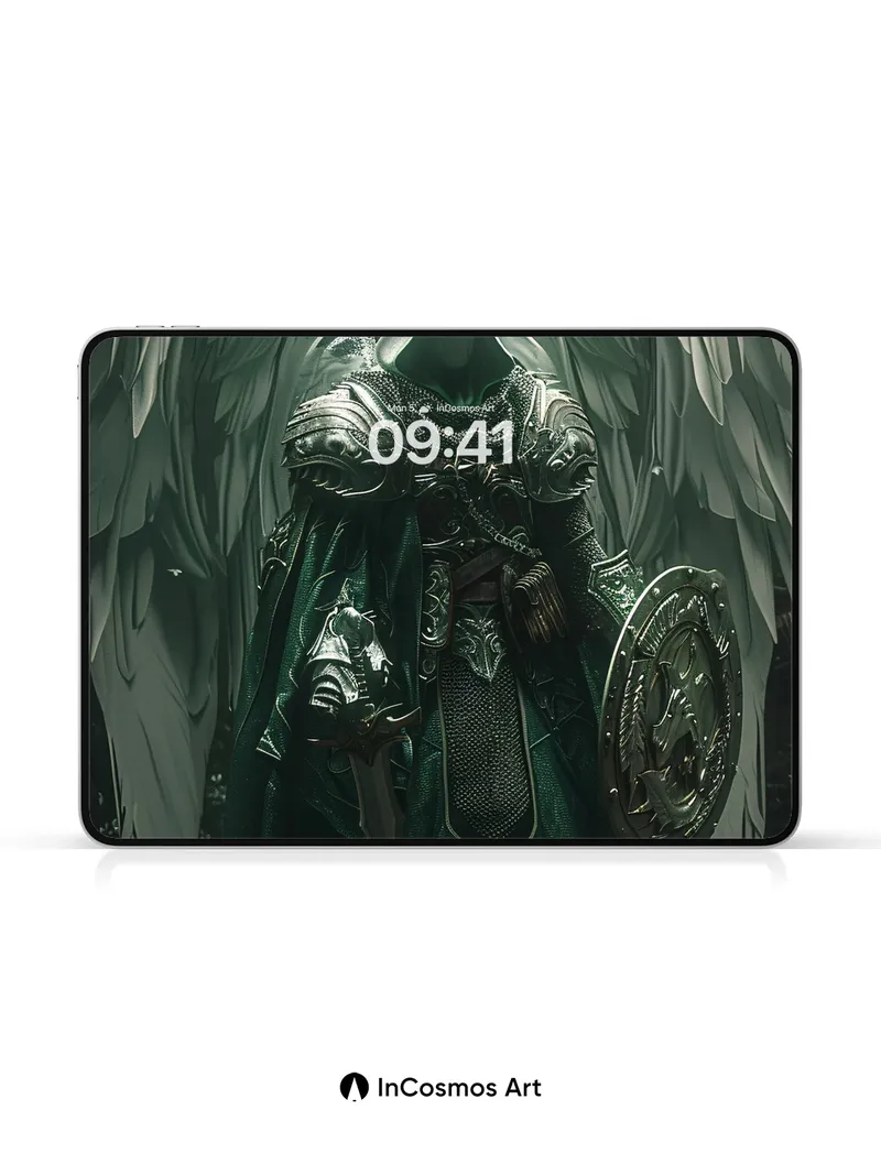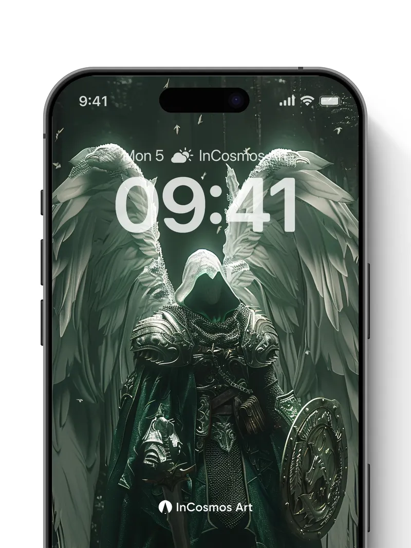Ethereal Sentinel Wallpaper with Feathered Armor