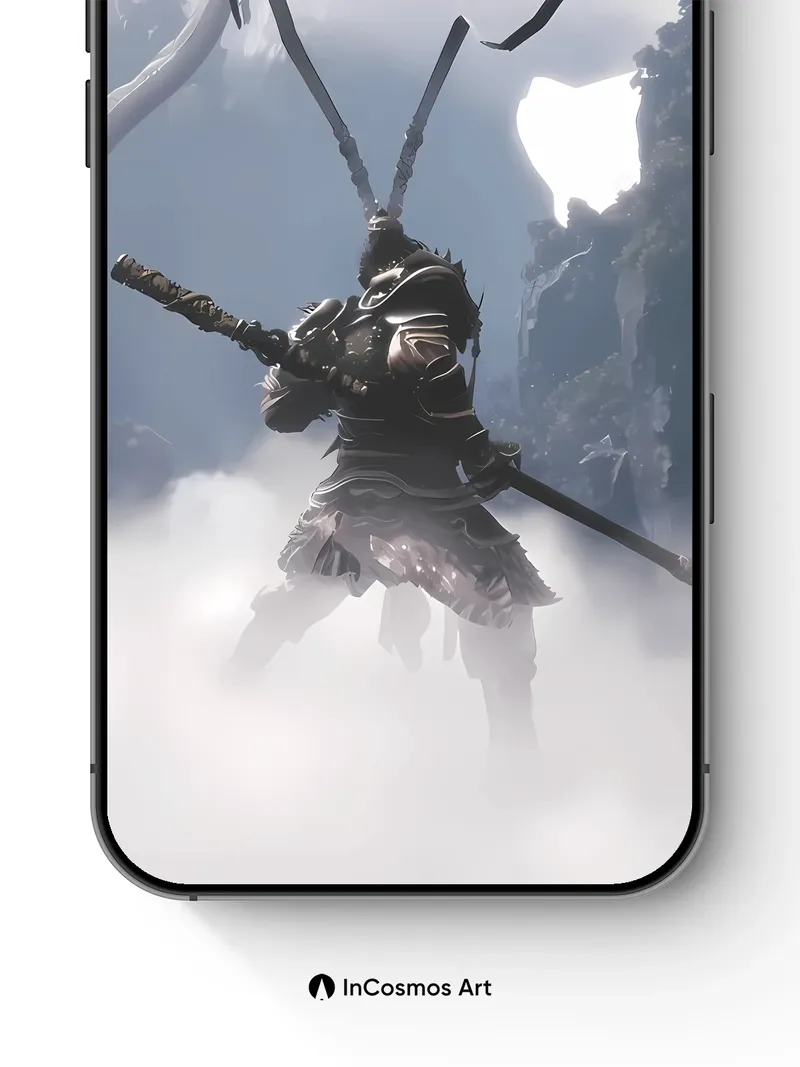 Debug product.metafields.custom.desc: Did you know ancient myths once believed warriors could ride clouds like horses? Here, a spectral knight in obsidian armor floats above a sea of mist, staff held high as a serpentine dragon coils through the sky, its form dissolving into light. The air hums with quiet power, every scale and chainmail link glowing faintly under a sun that seems to breathe through the clouds.