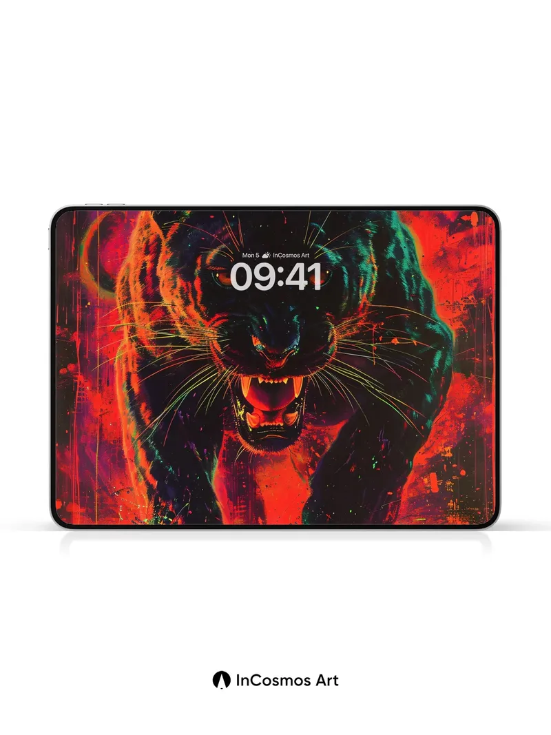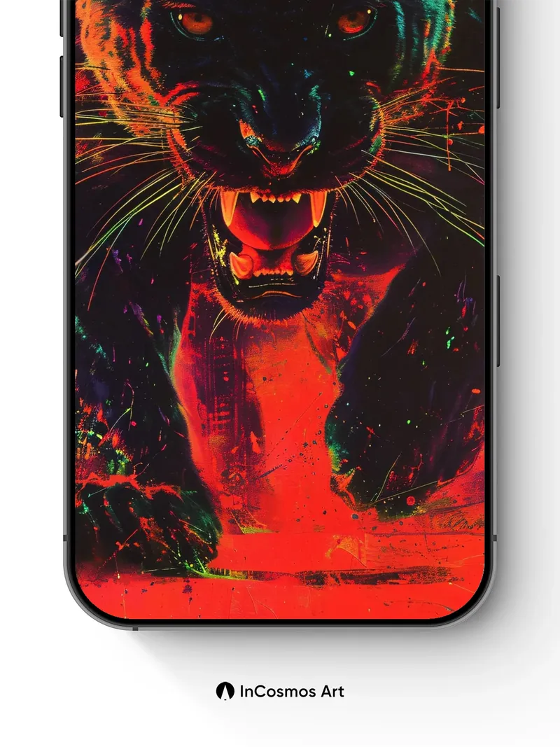 Debug page_description: Did you know black panthers can see in near-complete darkness due to their tapetum lucidum reflecting light? Here, their eyes burn like molten circuits against a blood-red void where color pulses like a heartbeat. The fur crackles with static, each whisker a filament of tension, as if the animal is charging through a digital storm—alive, electric, and ready to pounce. Share this with your best friend. Send this to your love and swap a matching set. What would happen if your walls began to breathe?
