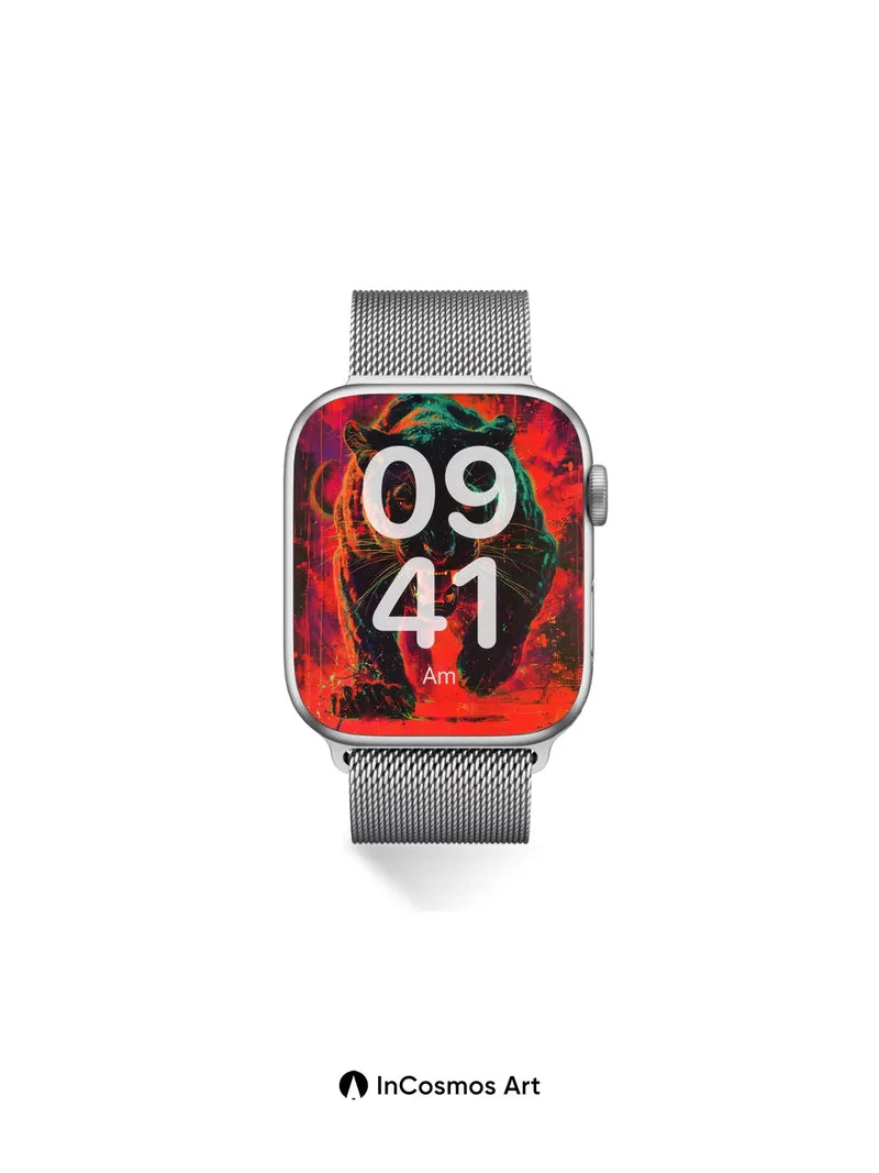 Debug product.metafields.custom.desc: Did you know black panthers can see in near-complete darkness due to their tapetum lucidum reflecting light? Here, their eyes burn like molten circuits against a blood-red void where color pulses like a heartbeat. The fur crackles with static, each whisker a filament of tension, as if the animal is charging through a digital storm—alive, electric, and ready to pounce.