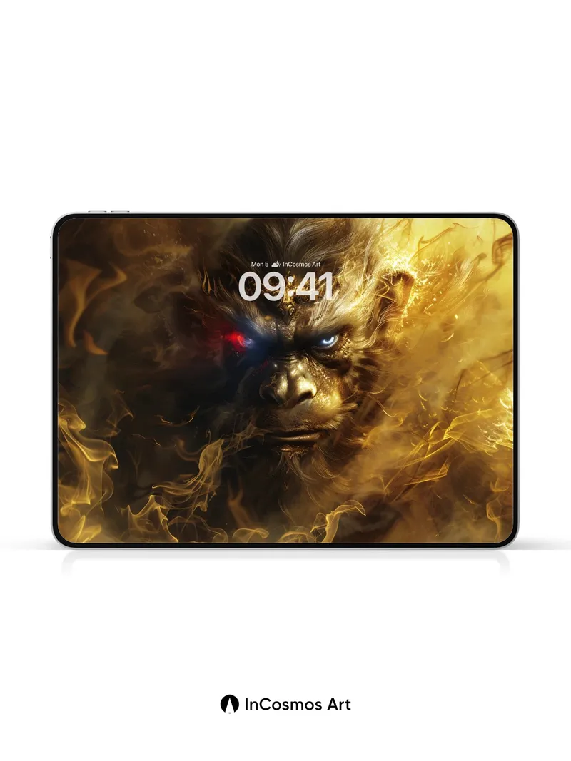 Fierce Flame Monkey Wallpaper with Glowing Eyes