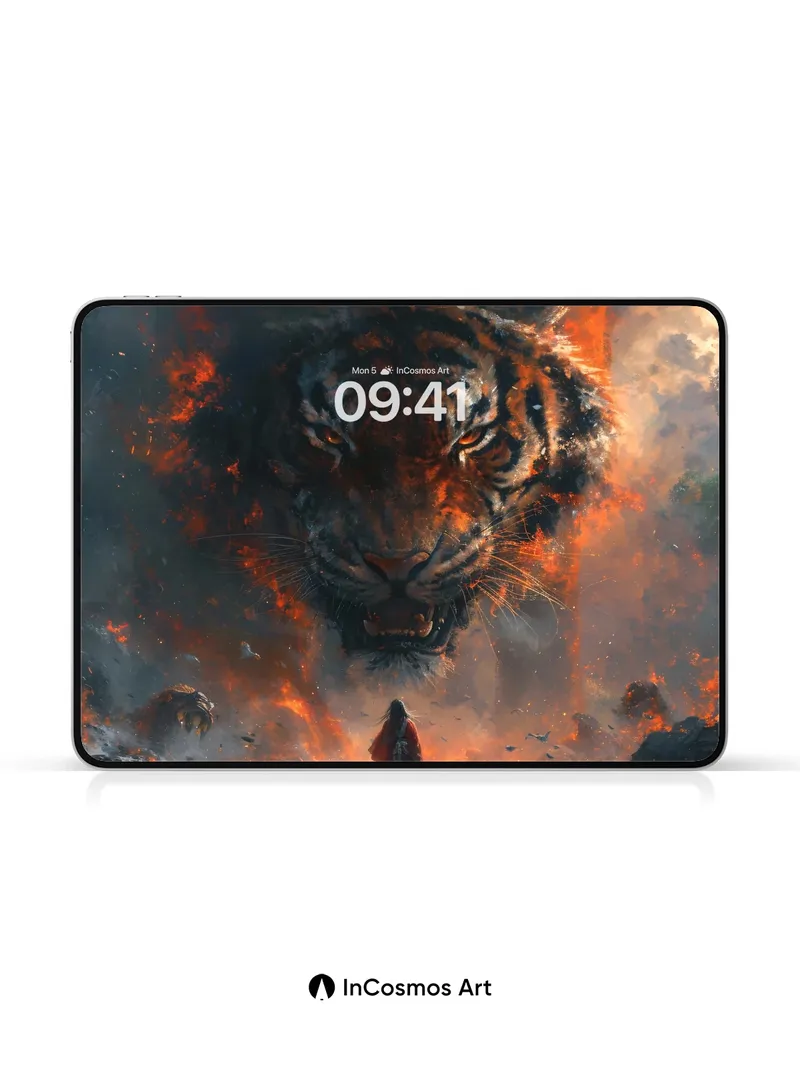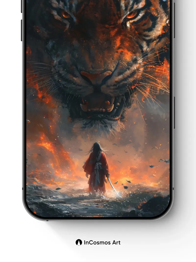 Fiery Tiger Roar Wallpaper with Ashen Warrior