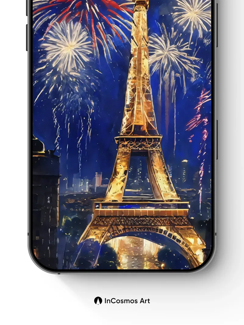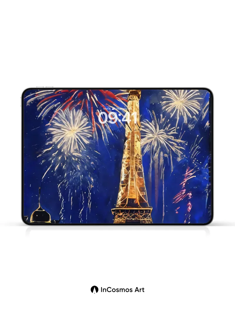 Firelight Eiffel Wallpaper with Starlit Sparks