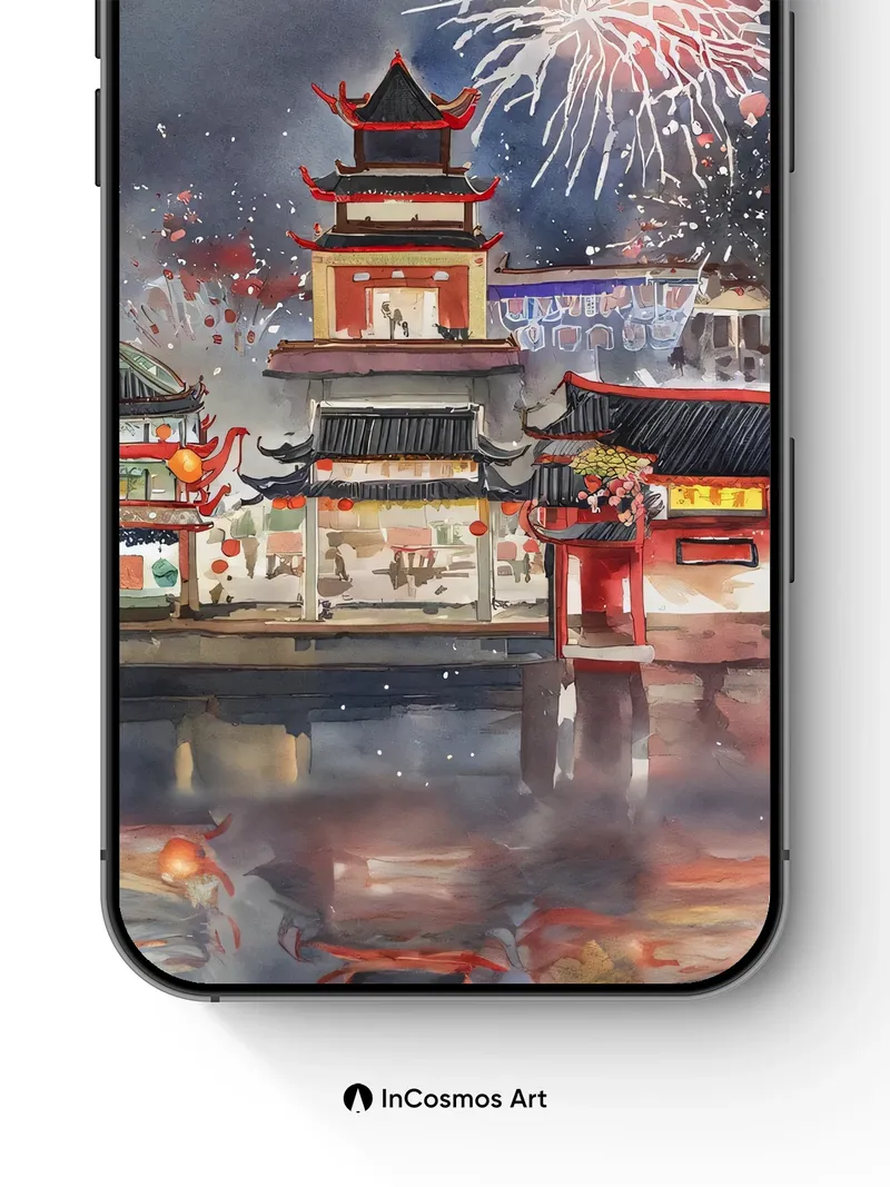 Firework Echo Wallpaper with Inked Reflections