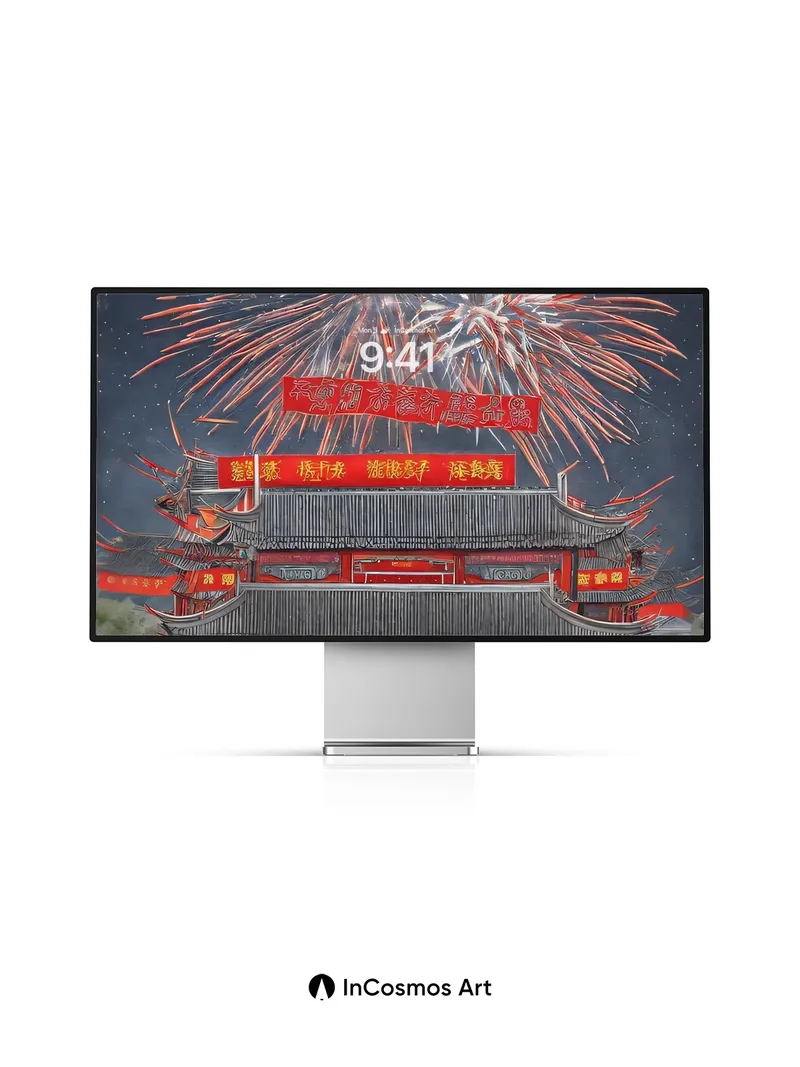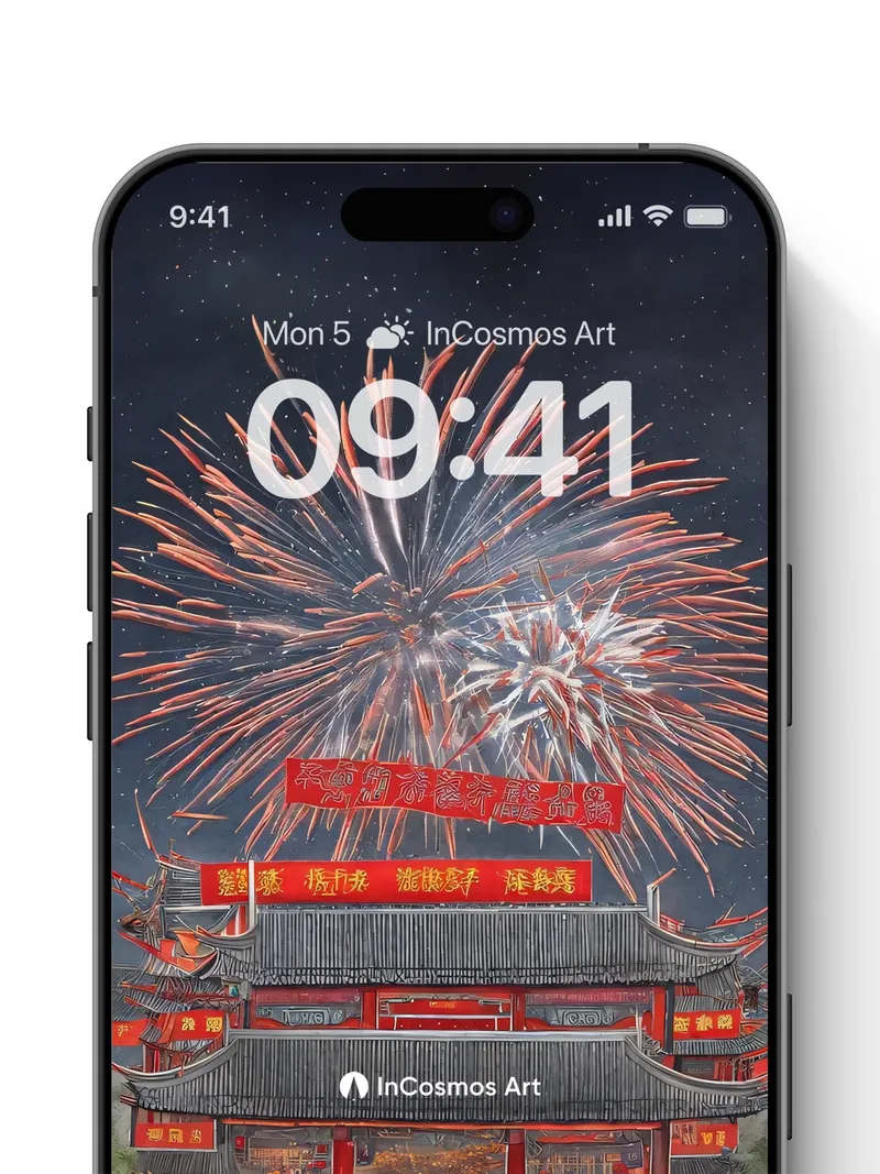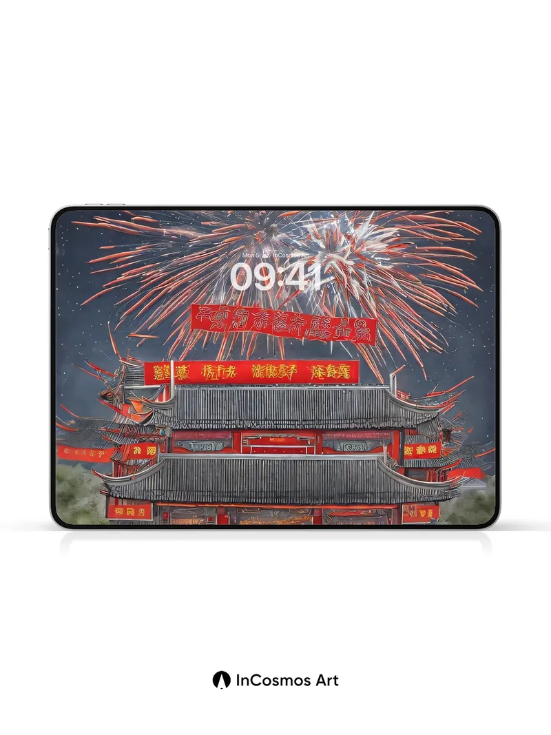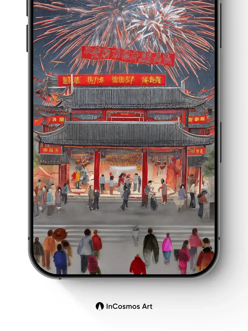 Debug product.metafields.custom.desc: Did you know ancient Chinese fireworks were originally invented to scare away evil spirits? Now, light bursts in crimson and silver across the night sky, painting the heavens like a living scroll. Beneath it, lanterns glow warm against the darkened eaves of a temple, where people gather as if drawn by the rhythm of celebration—each spark a memory, each flame a wish.