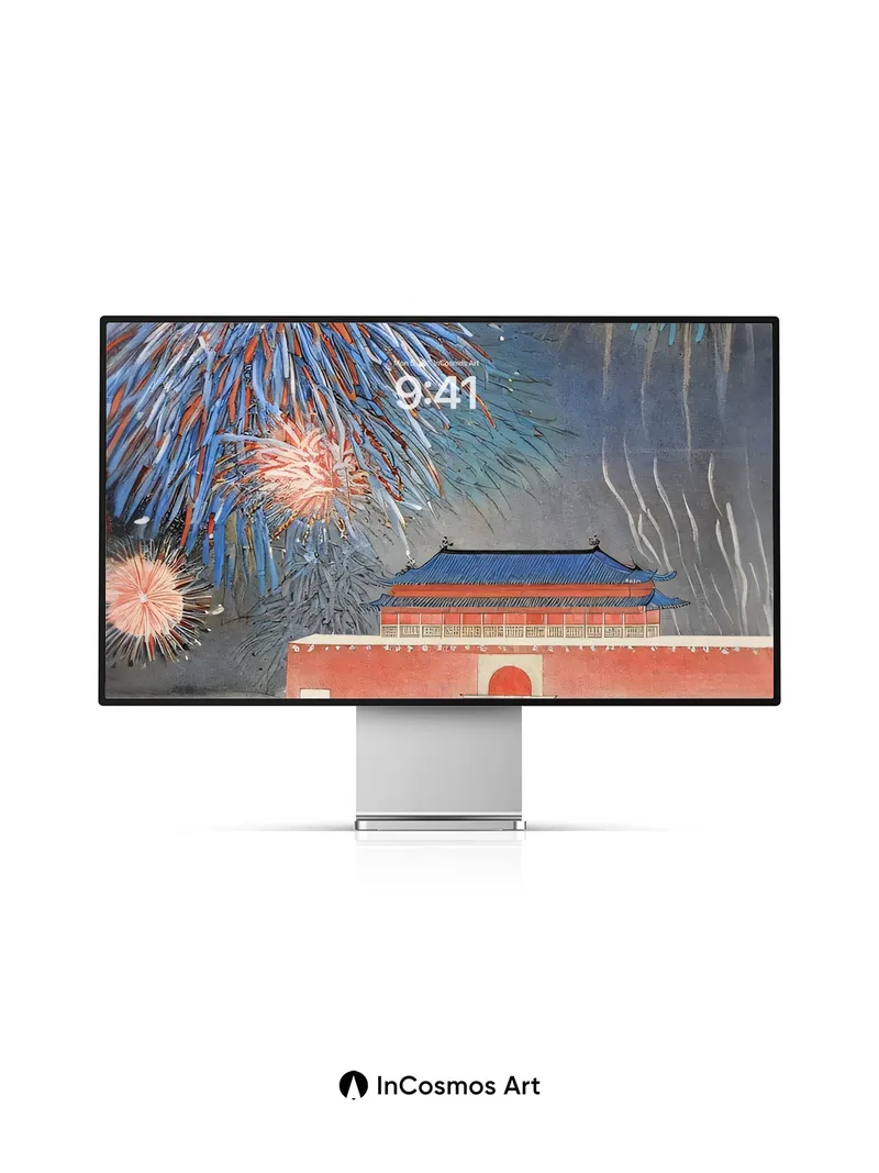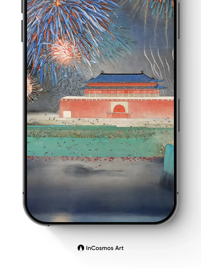 Debug product.metafields.custom.desc: Did you know that traditional Korean palaces once hosted fireworks during royal celebrations? Here, bursts of cobalt and tangerine light explode above the crimson walls, their trails shimmering like liquid silk across a midnight sky. Below, the still waters mirror the chaos, turning each spark into a fleeting constellation — a moment where history breathes fire.