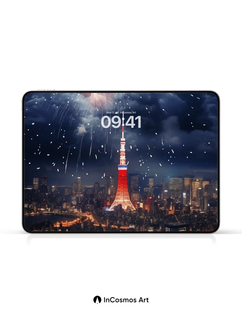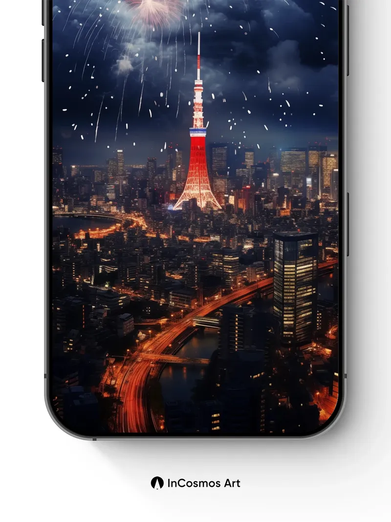 Firework Symphony Wallpaper with Tokyo Tower Glow