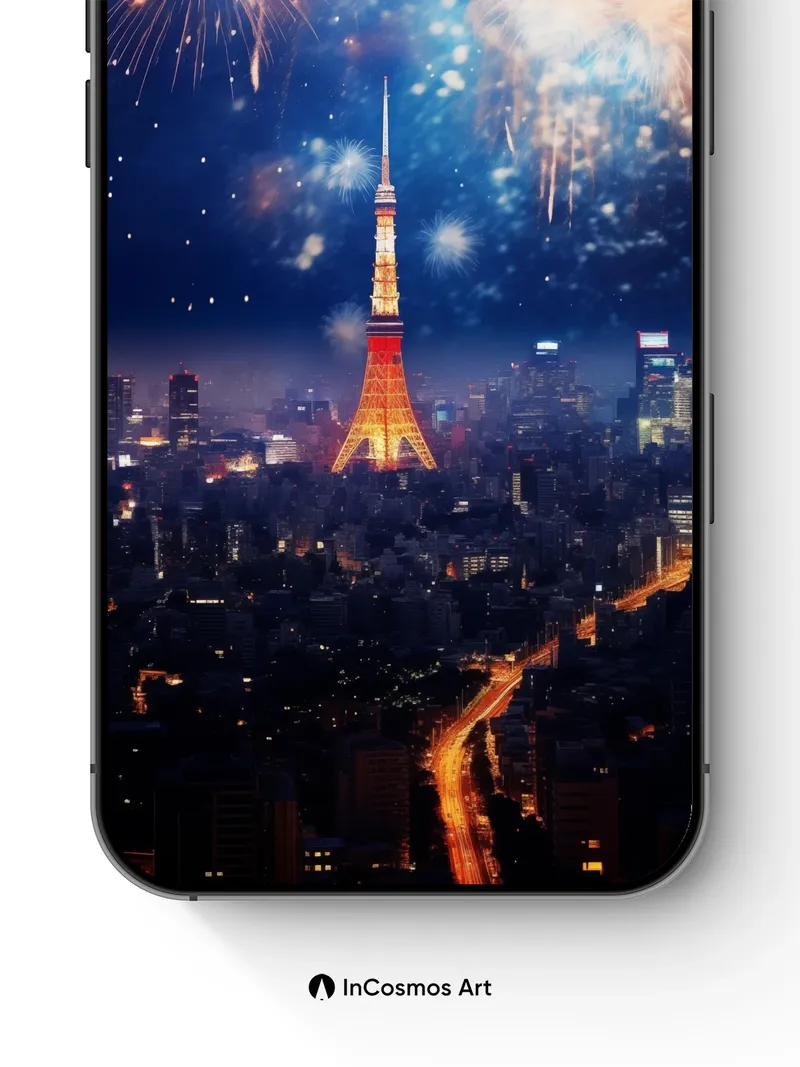 Debug page_description: Did you know the Tokyo Tower was inspired by the Eiffel Tower but built with a unique red-and-white livery to honor Japan’s national colors? Above it, fireworks explode like celestial brushstrokes—each burst a fleeting constellation of light and heat. The city breathes beneath, veins of traffic glowing amber through the night, while the sky becomes a canvas where celebration meets eternity. Share this with your best friend. Send this to your love and swap a matching set. What if every spark in the sky remembered your name?