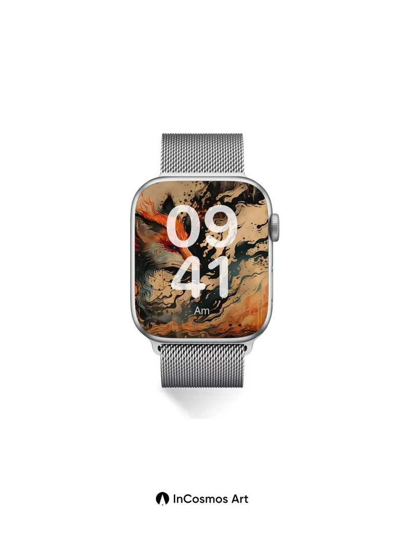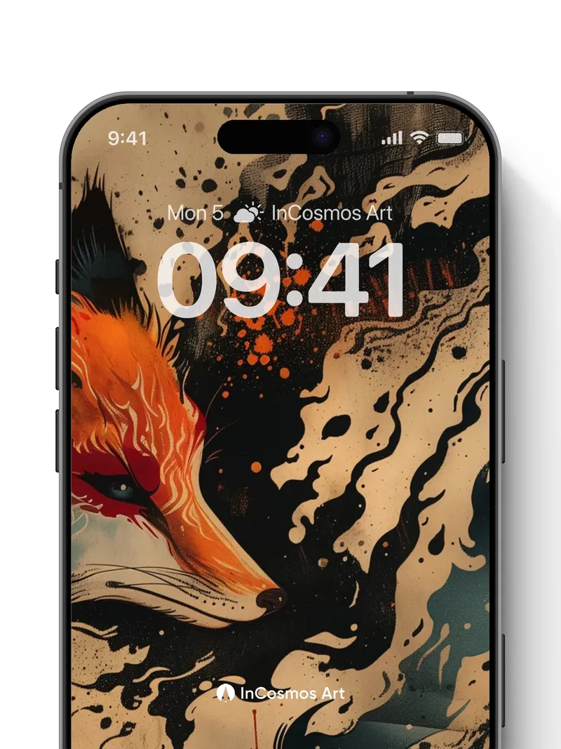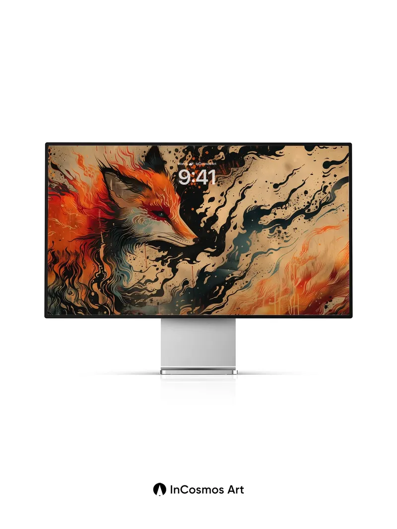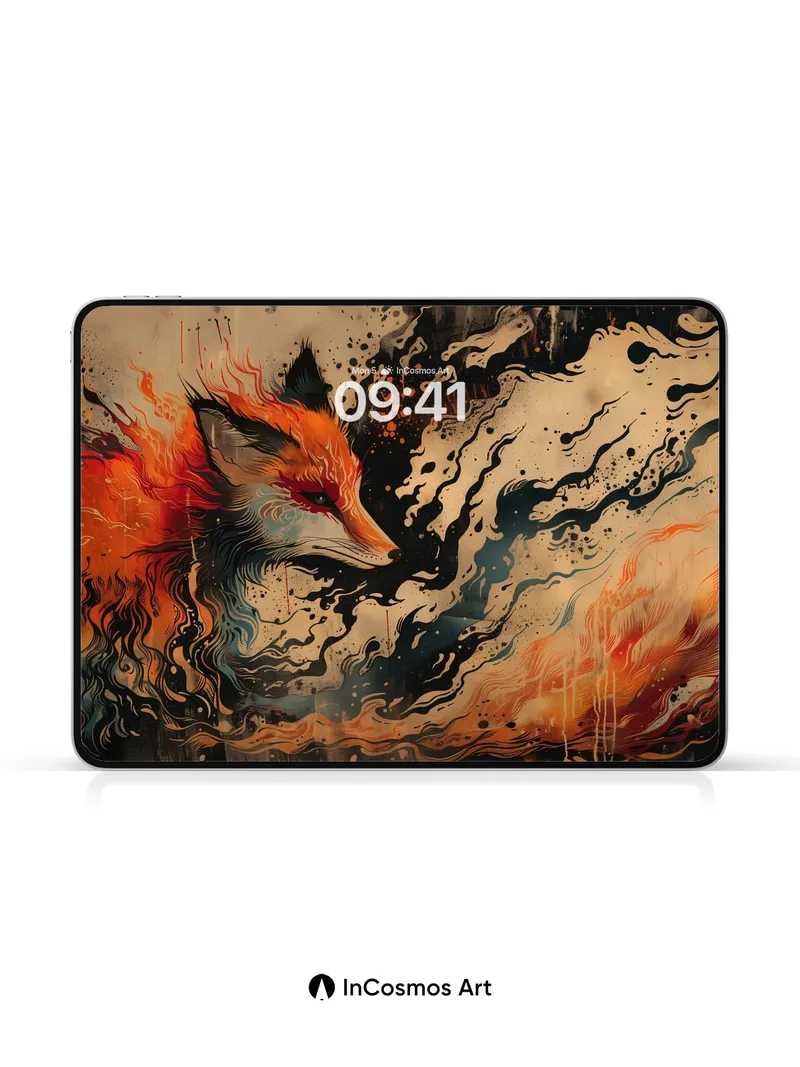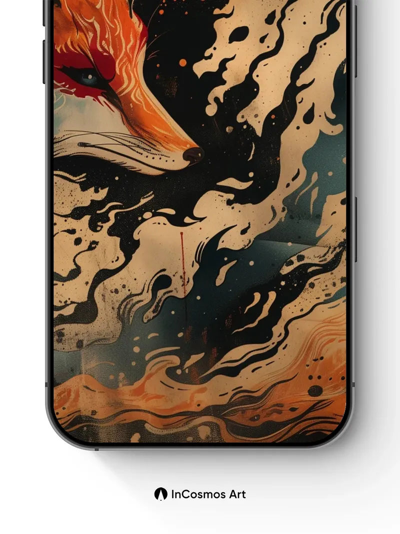 Flame-Woven Fox Wallpaper with Cosmic Ink Trails