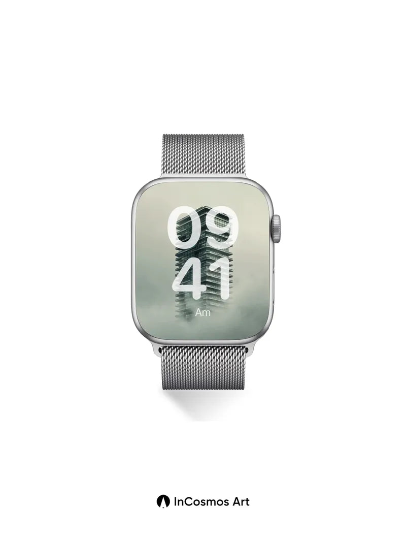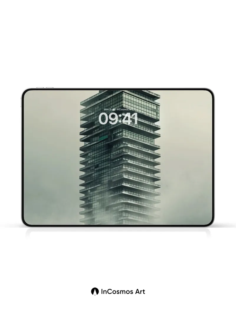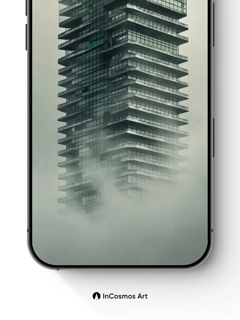 Fog-Clad Spire Wallpaper with Floating Glass