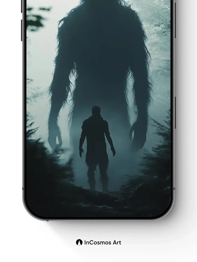 Fogbound Guardian Wallpaper with Glowing Eyes