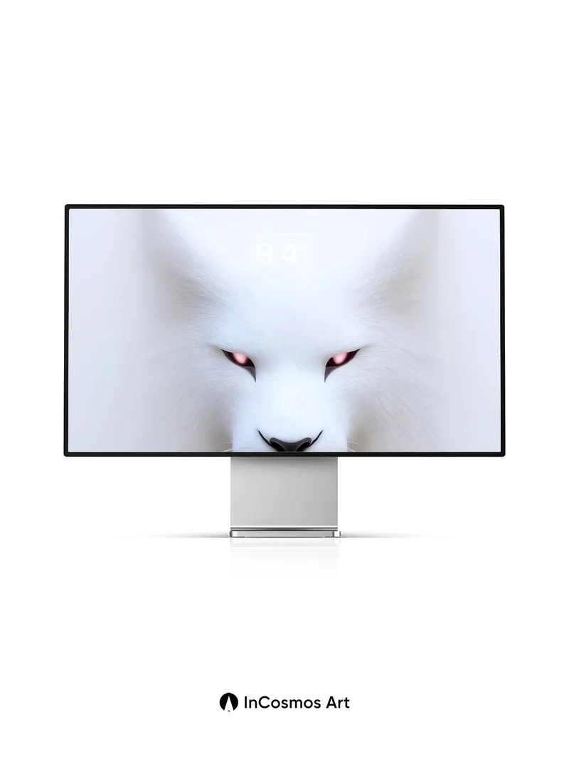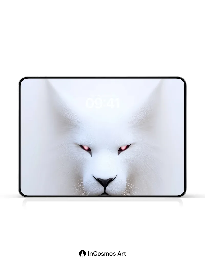 Debug product.metafields.custom.desc: Did you know that Arctic foxes can change their fur color with the season, blending into snow like a silent whisper? This image captures the stillness of a white feline face emerging from mist, its piercing crimson eyes glowing like embers in an endless winter. Light crawls over soft, snow-like fur, revealing subtle textures that feel alive beneath your fingertips.