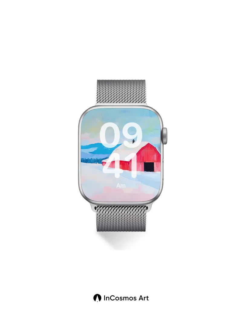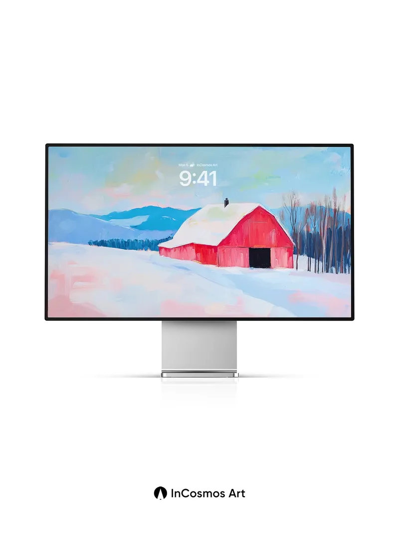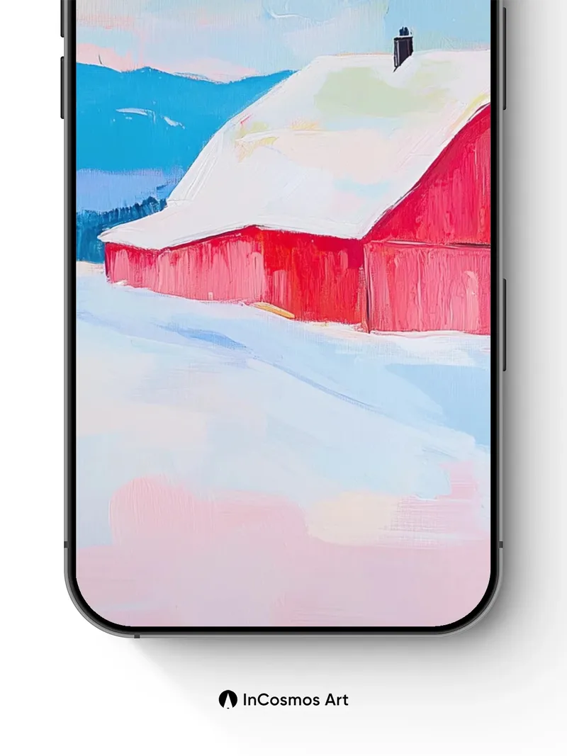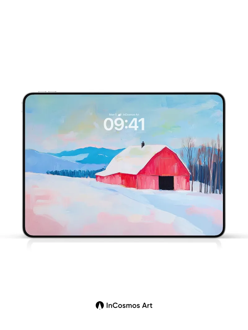 Frost-Hushed Barn Wallpaper with Snow-Drifted Silence