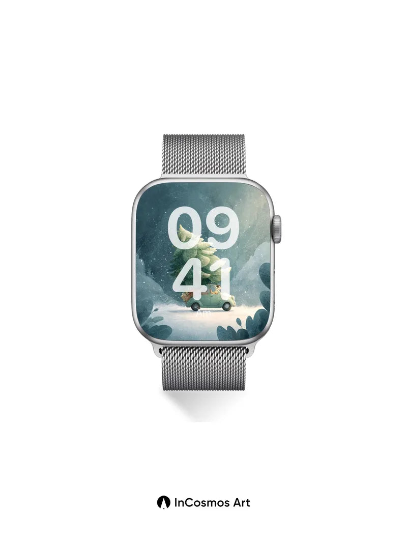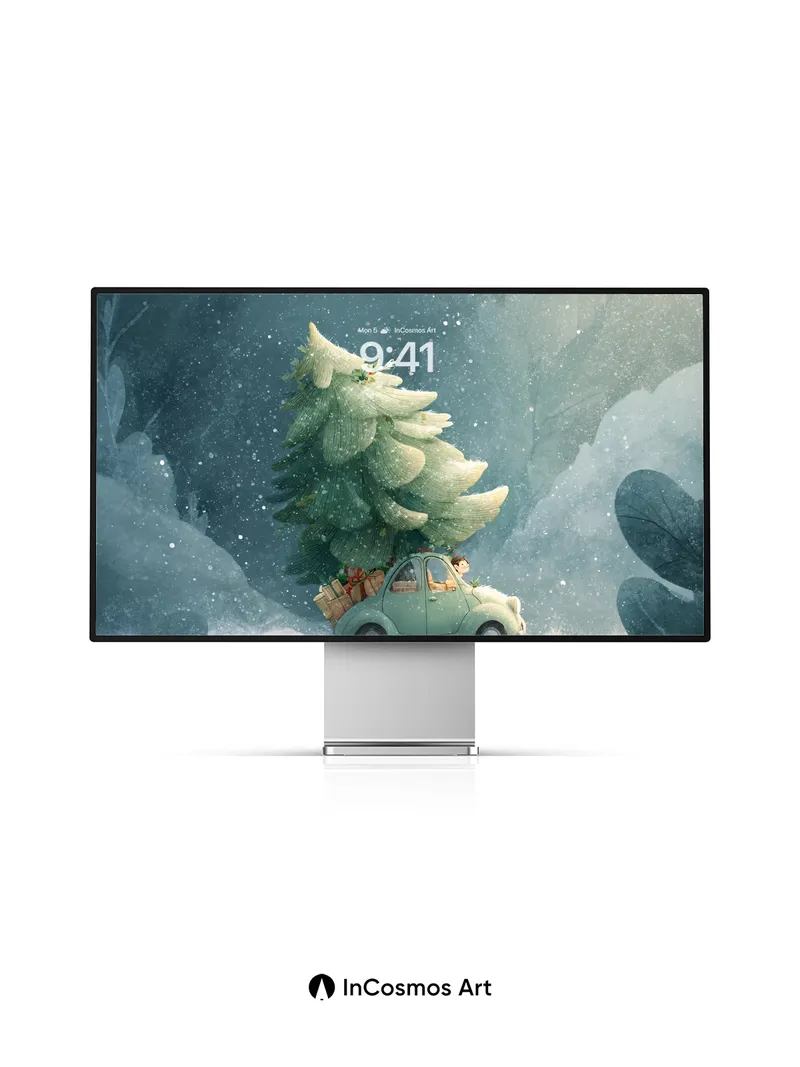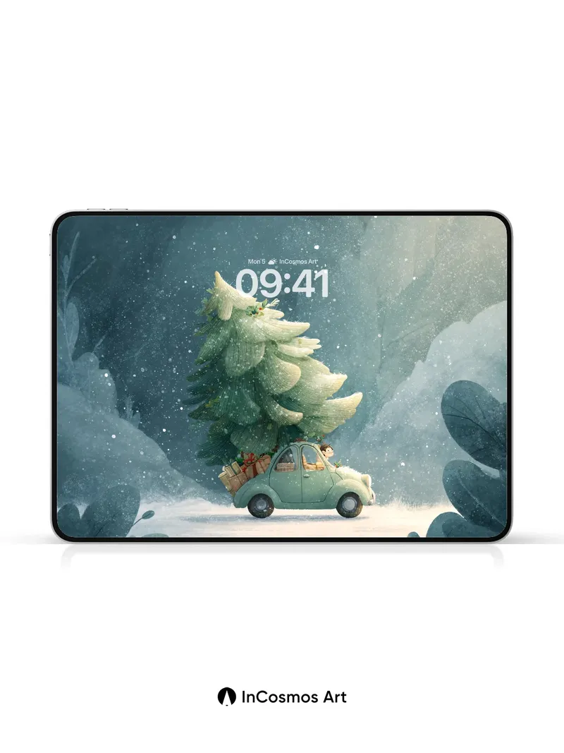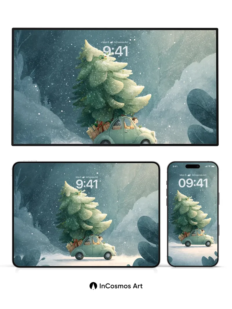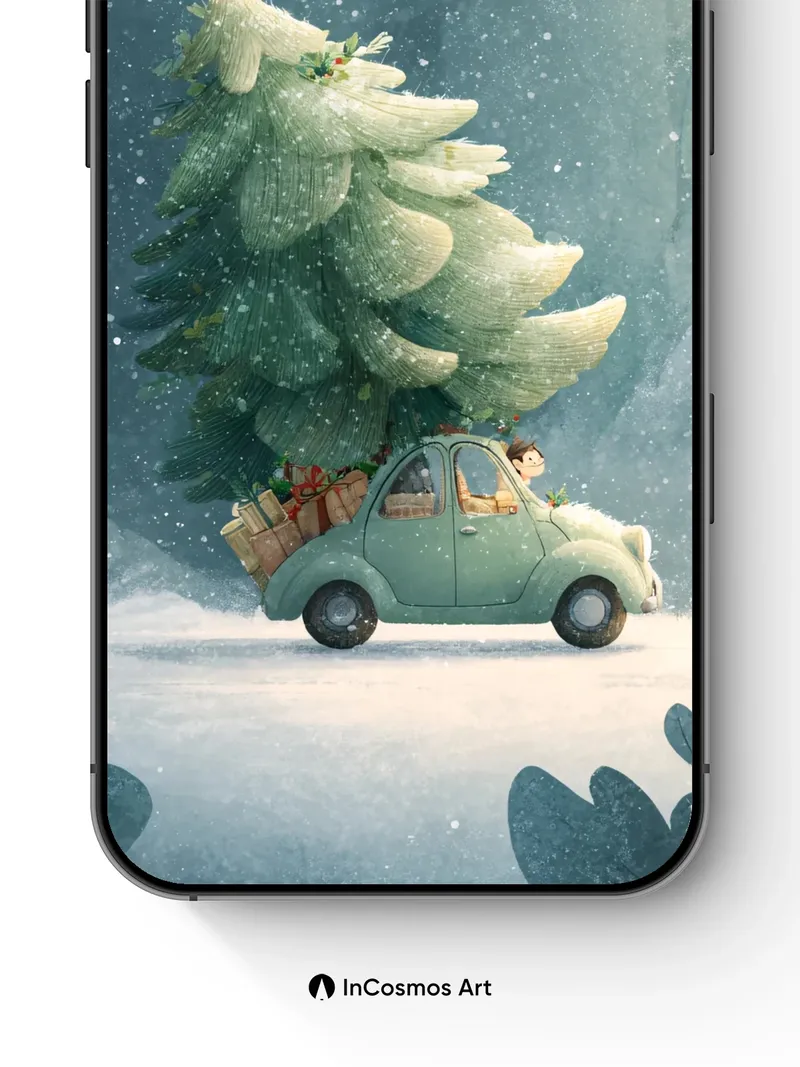 Frost-Kissed Journey Wallpaper with Christmas Tree Car