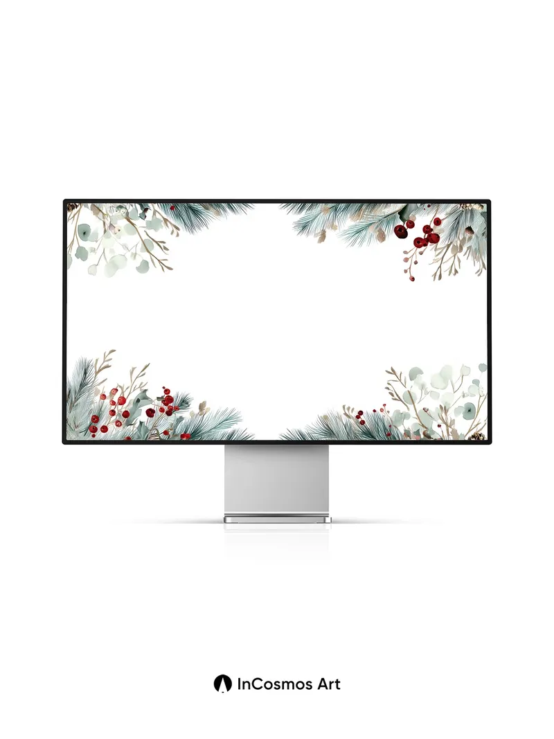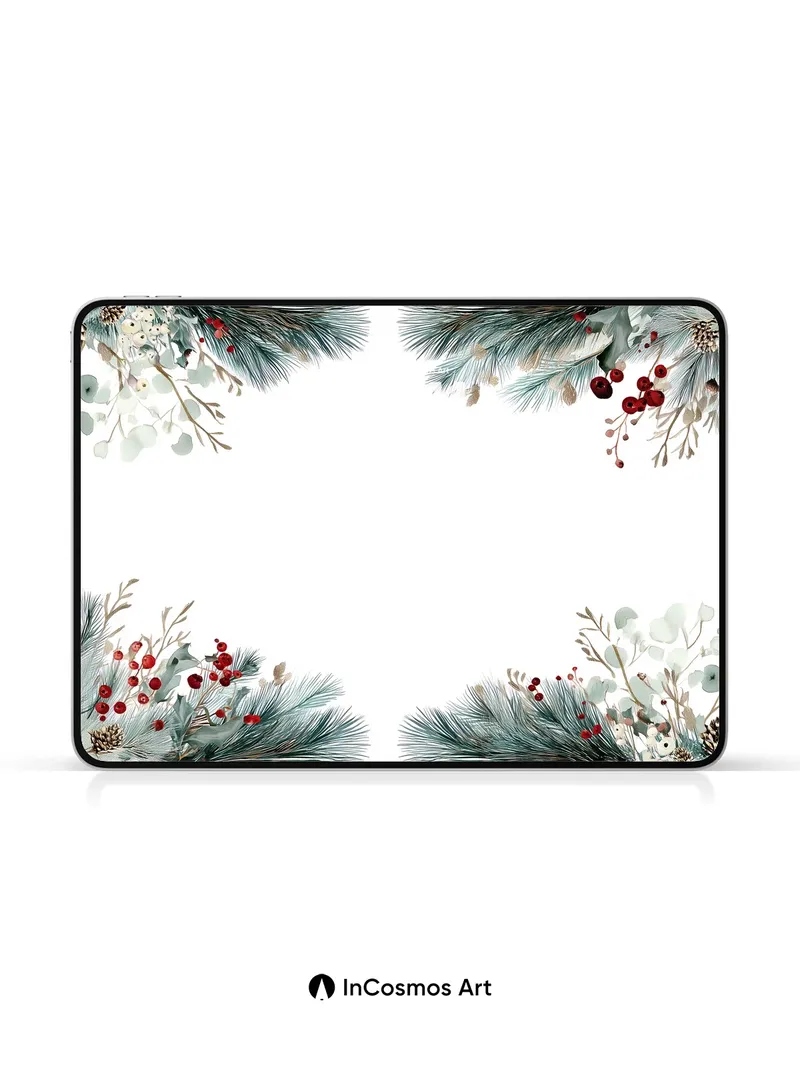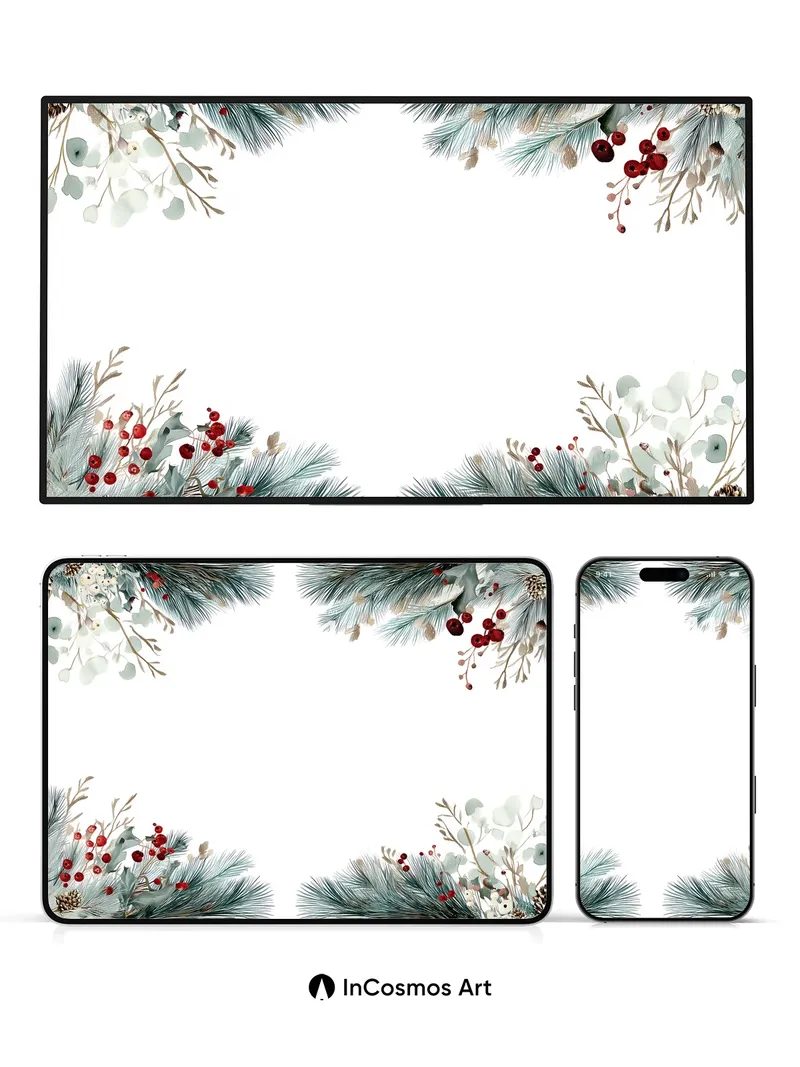 Frost-Kissed Pine Wallpaper with Winter Berries
