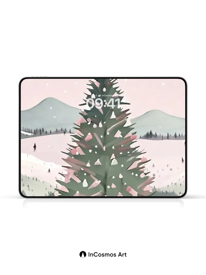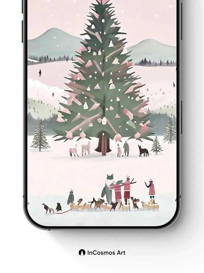 Frost-Laced Pine Wallpaper with Silent Gatherings