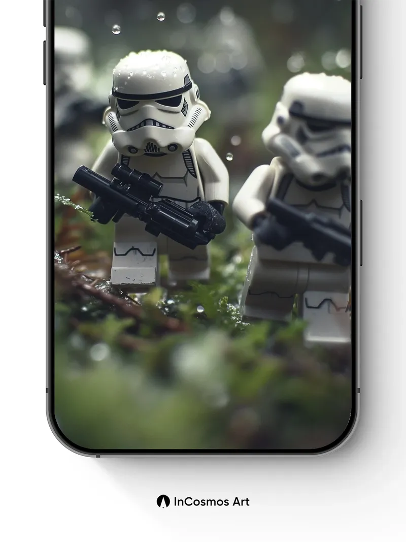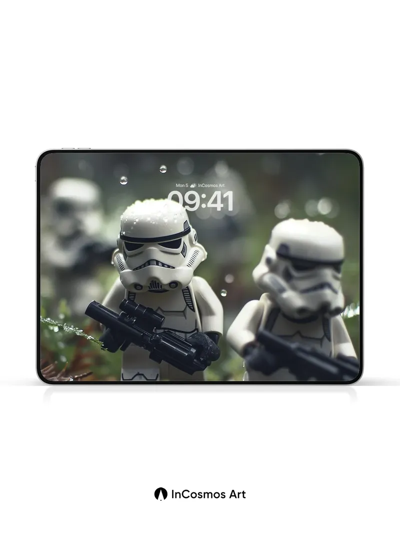 Frost-Laced Stormtrooper Wallpaper in Rain-Drenched Forest
