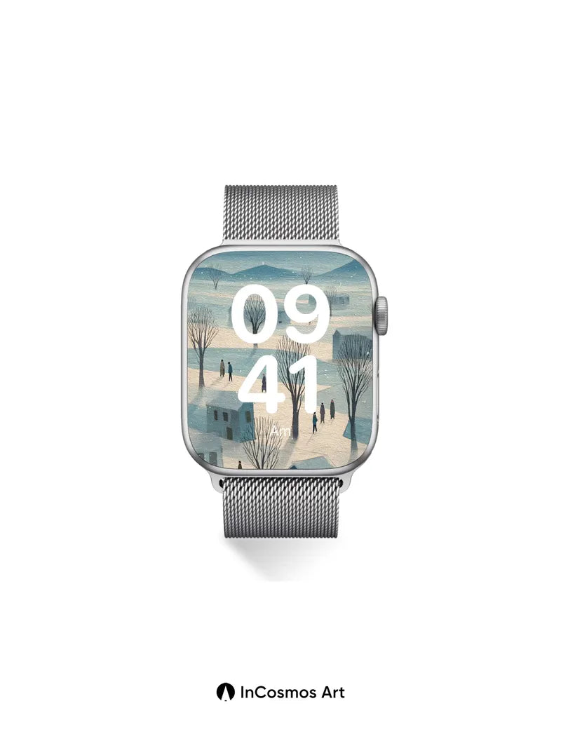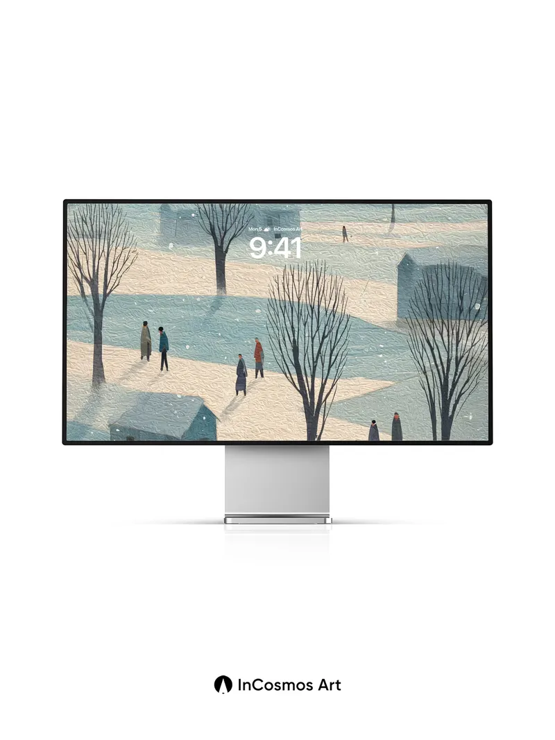 Debug product.metafields.custom.desc: Did you know snowflakes form unique crystal patterns in temperatures just below freezing, each one a fleeting sculpture of ice? Here, light crawls over frozen rooftops and bare branches, casting long, quiet shadows across a village wrapped in stillness. The air hums with hushed movement—people walking like silhouettes through a breathless dream, their footsteps barely disturbing the soft white blanket.
