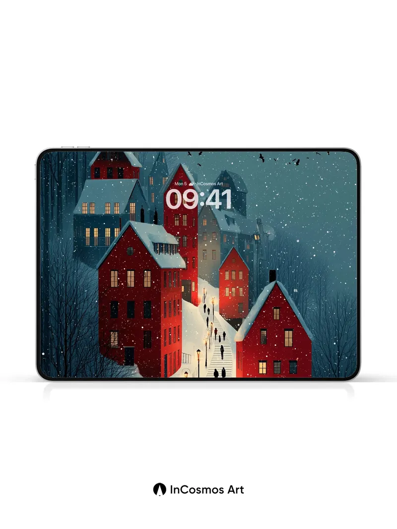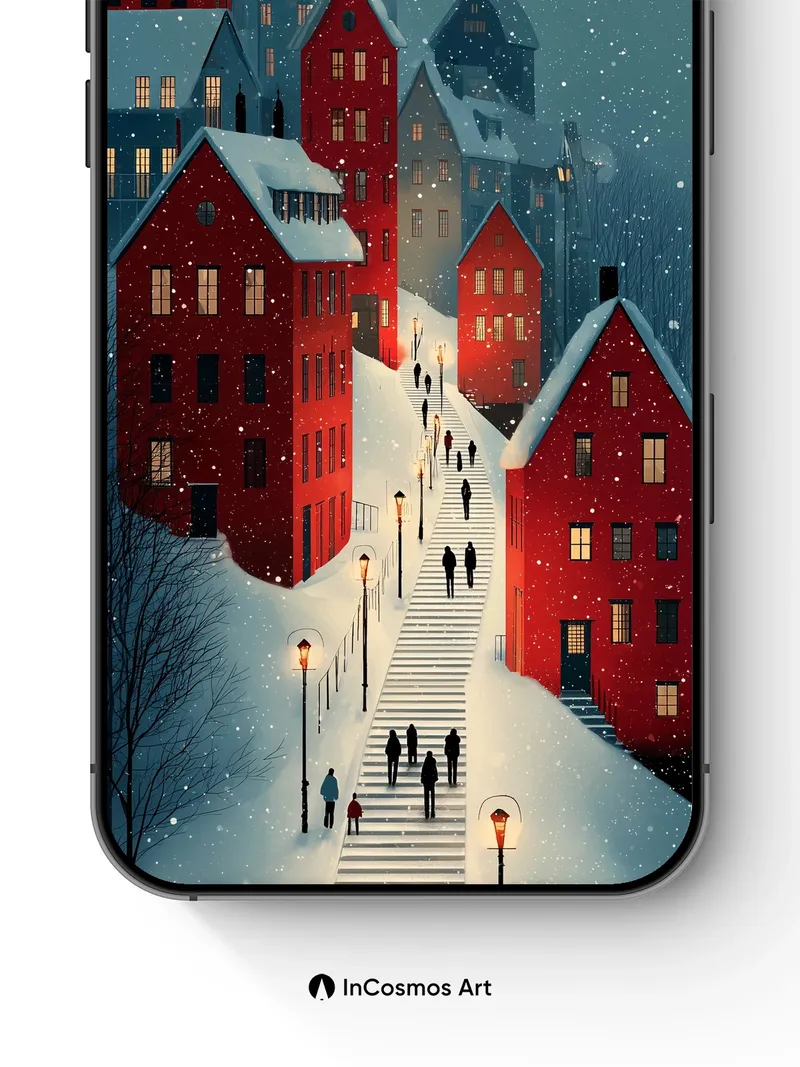 Frost-Lit Village Wallpaper with Whispering Steps
