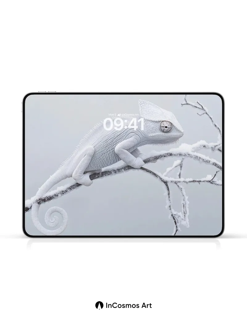 Frost Whisper Chameleon Wallpaper in Winter Stillness