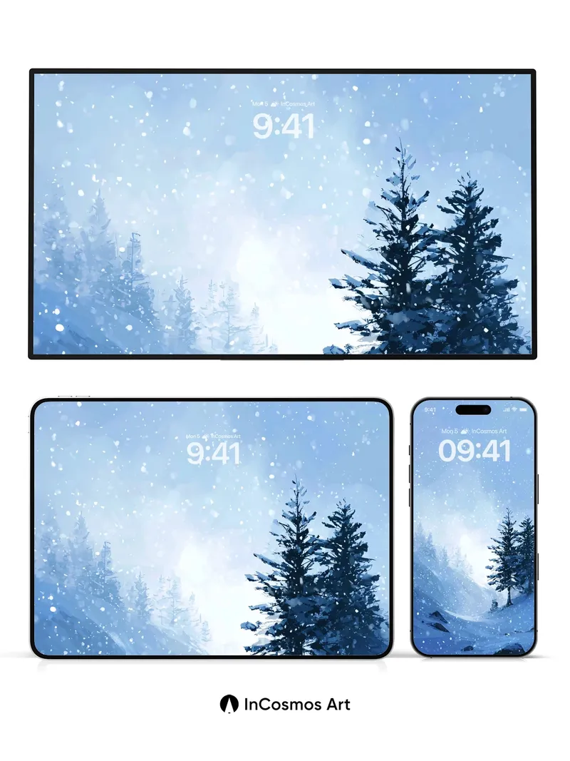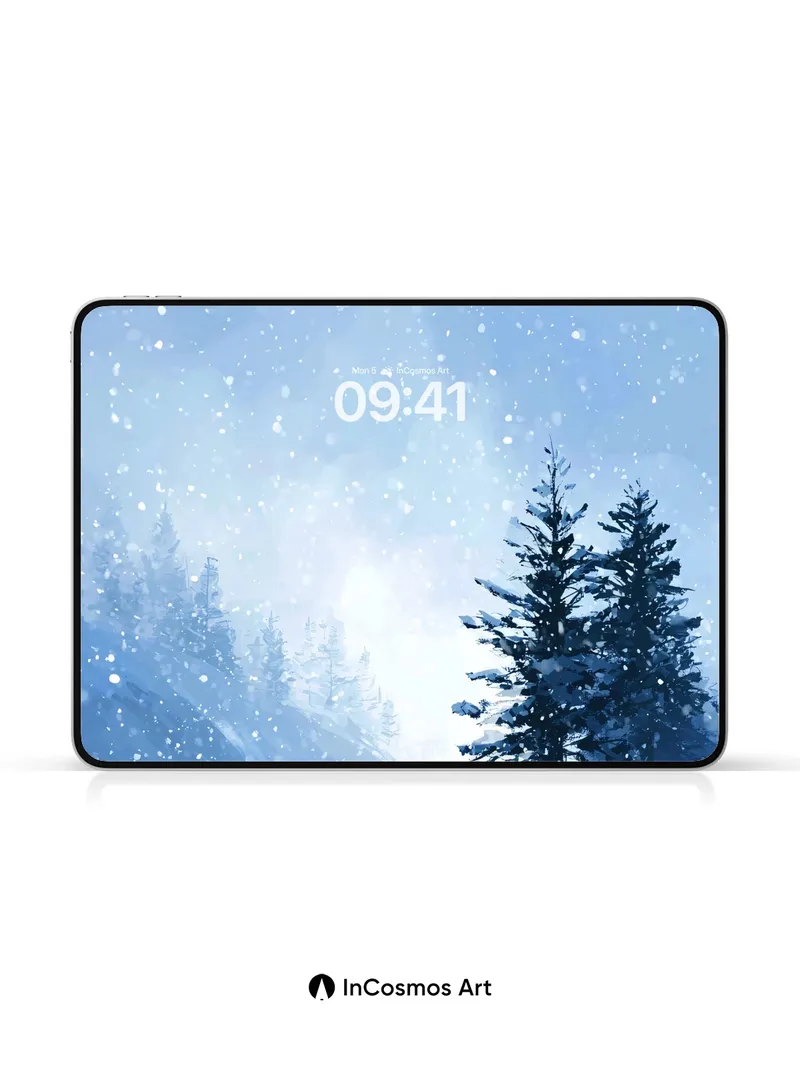 Frost Whisper Wallpaper with Snow-Drifted Pines