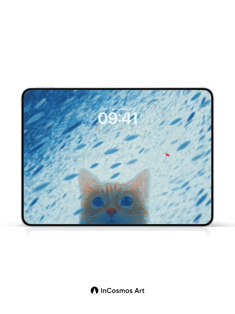 Frost-Whispered Cat Wallpaper with Floating Shadows