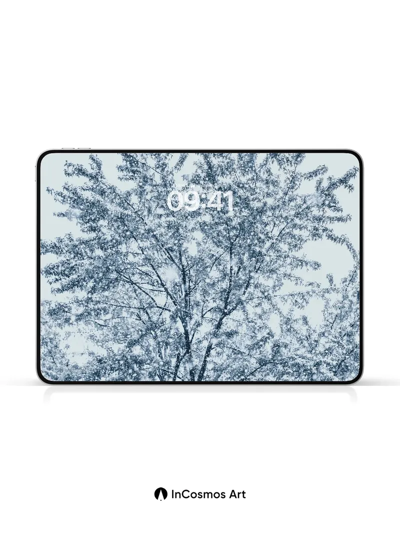 Frost-Whispered Tree Wallpaper with Silent Snowfall