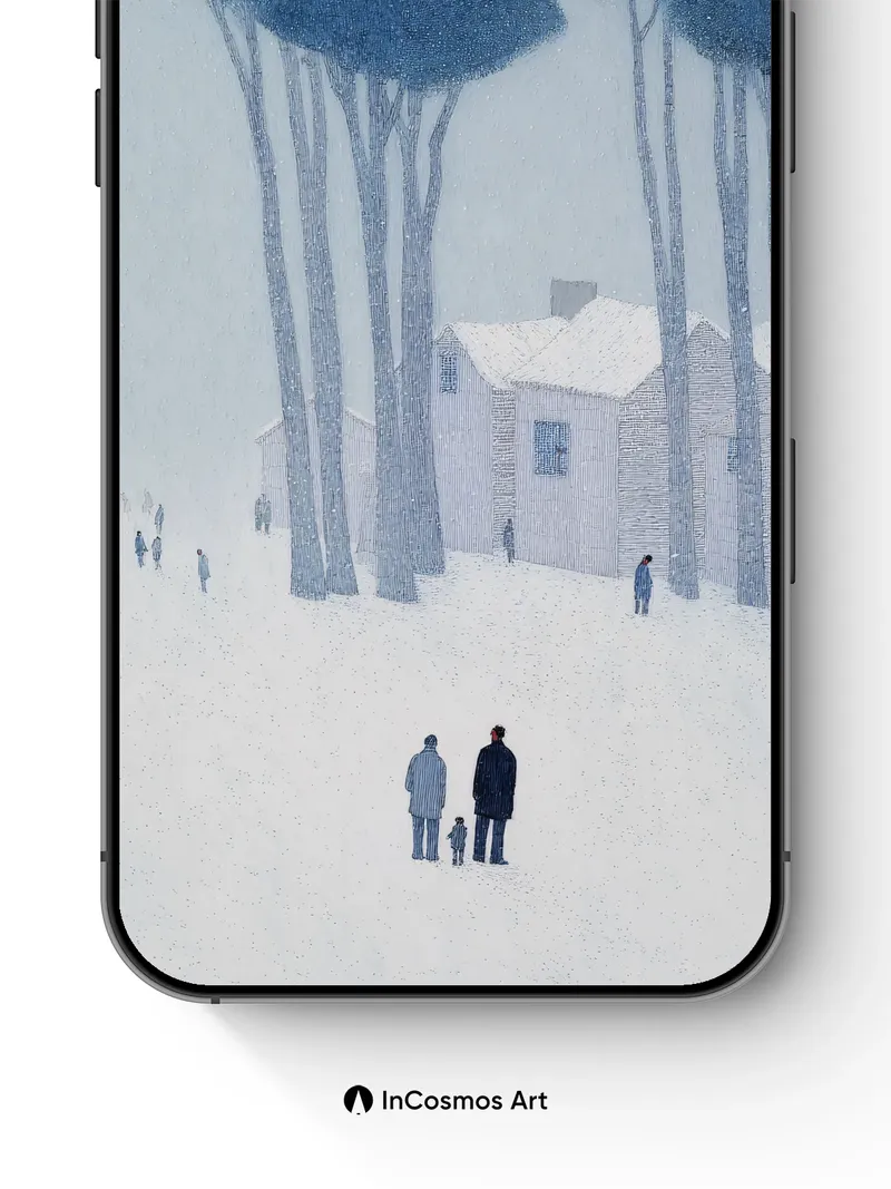 Frost-Whispered Trees Wallpaper with Snow-Cradled Homes