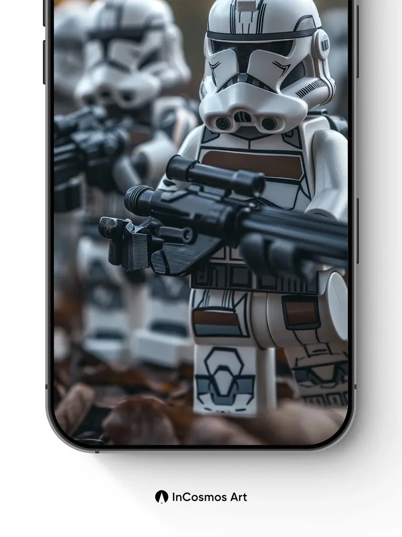 Debug product.metafields.custom.desc: Did you know LEGO minifigures are built with over 20 million units produced annually? Here, stormtroopers stand frozen in time, their white armor gleaming under golden bokeh light that dances like embers through fallen leaves. You feel the crisp chill of a battlefield paused—each rifle held steady, eyes hidden behind visors that reflect not war, but quiet defiance.