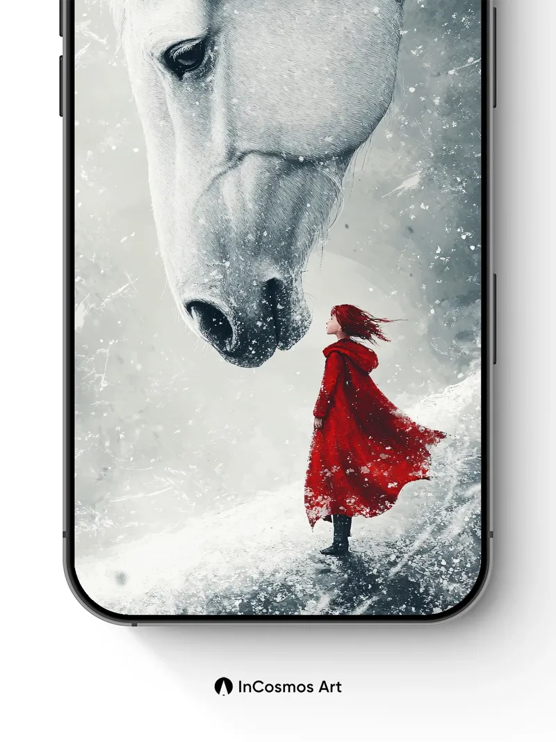Frostbound Gaze Wallpaper with Crimson Cloak