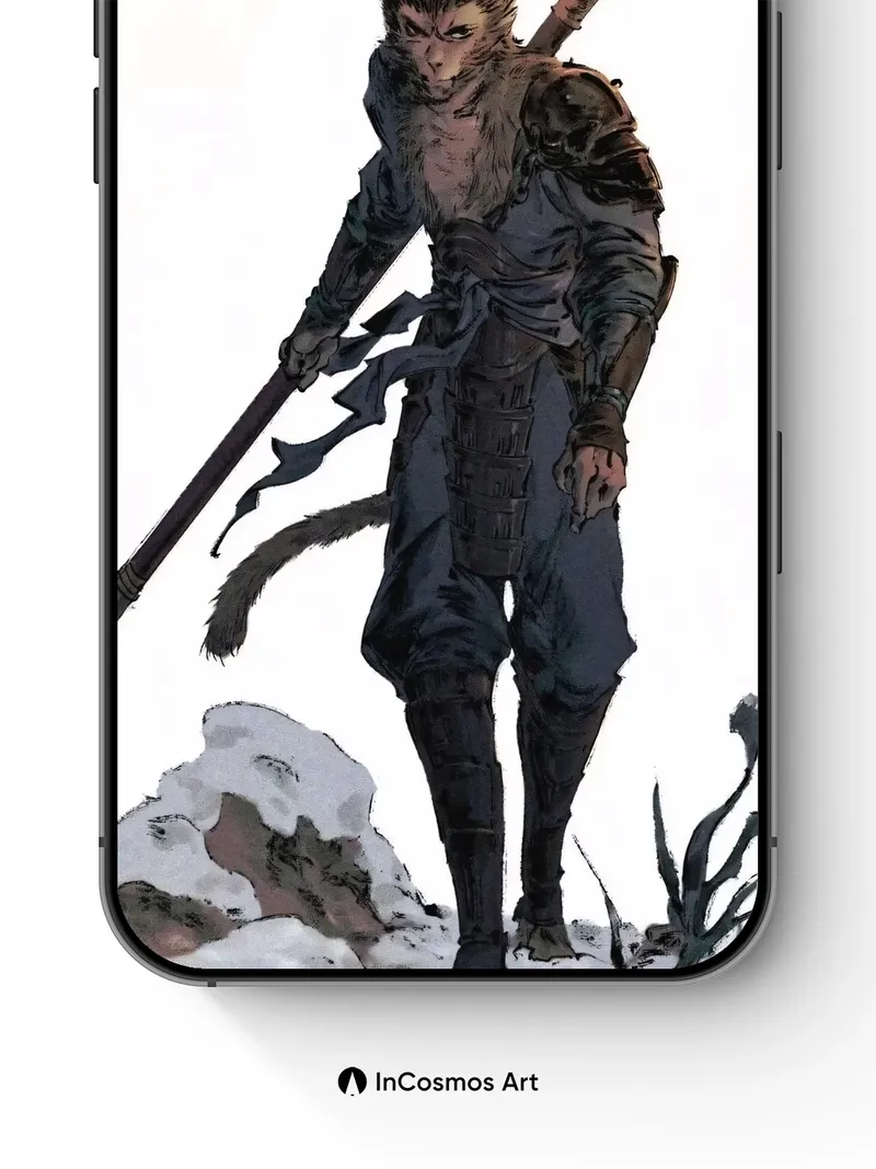 Frostbound Monkey Warrior Wallpaper with Staff of Storms