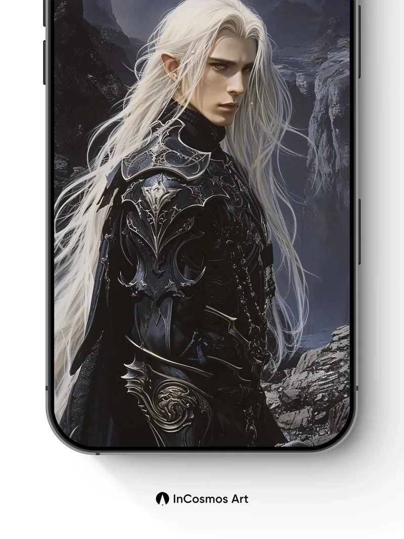 Did you know ancient elves wove their hair from moonlight and frost? This warrior’s silver tresses flow like liquid mercury, catching the last glow of a dying sky as he stands atop jagged cliffs where shadows breathe fire. His armor, carved from obsidian and etched with forgotten runes, reflects no light—only the storm that coils behind him, whispering secrets of realms beyond sight.