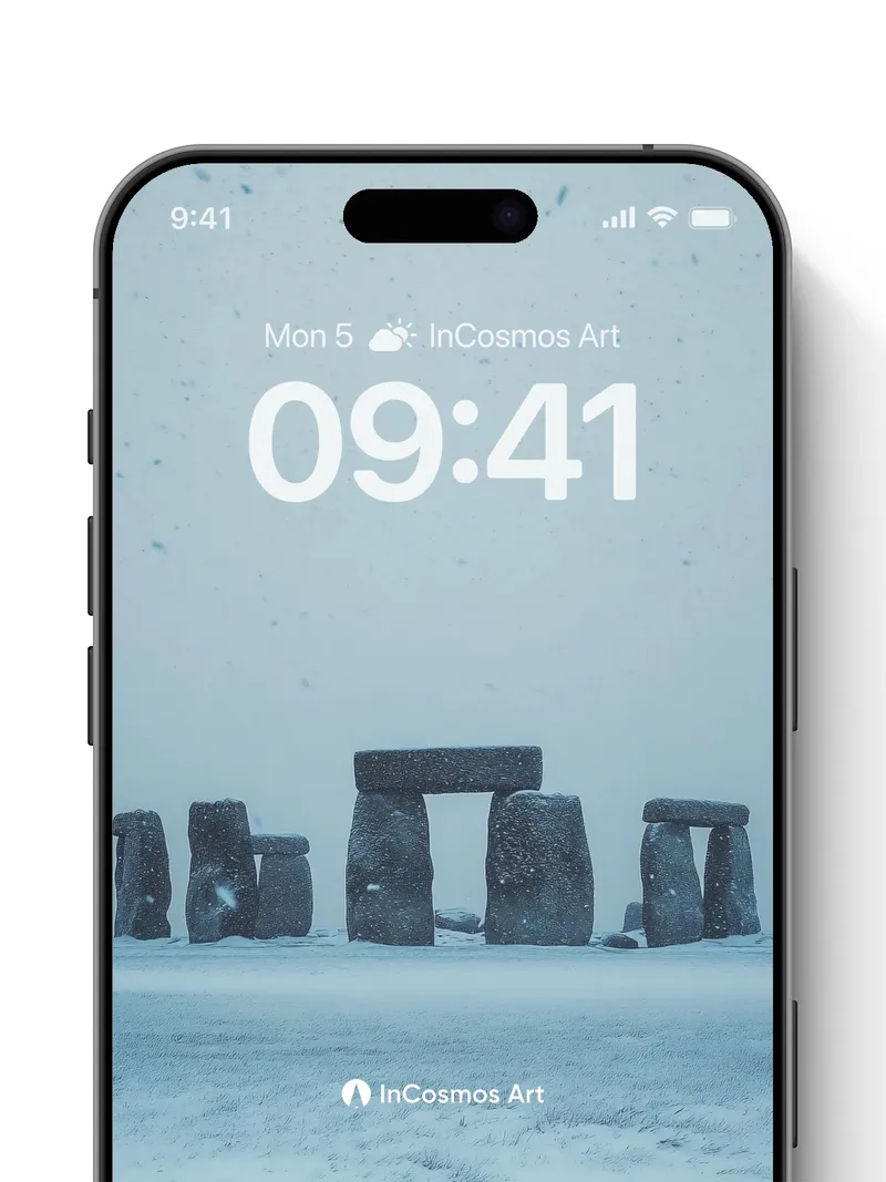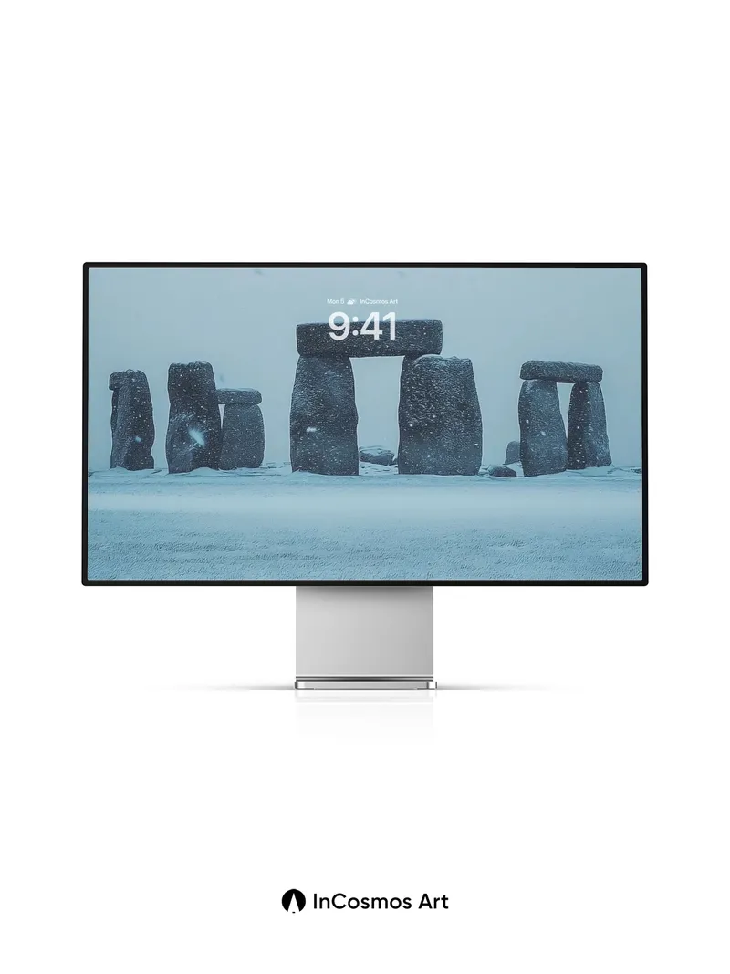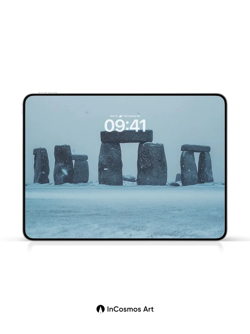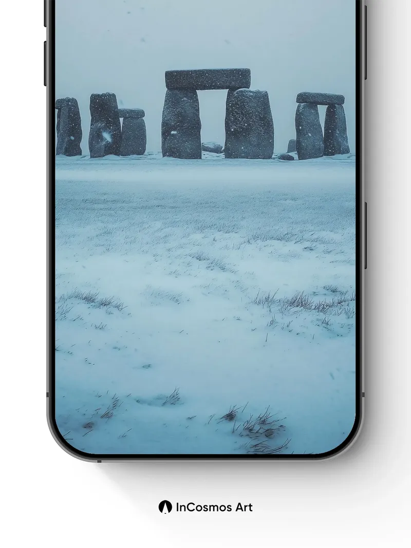 Frostbound Stonehenge Wallpaper with Snowfall Silence