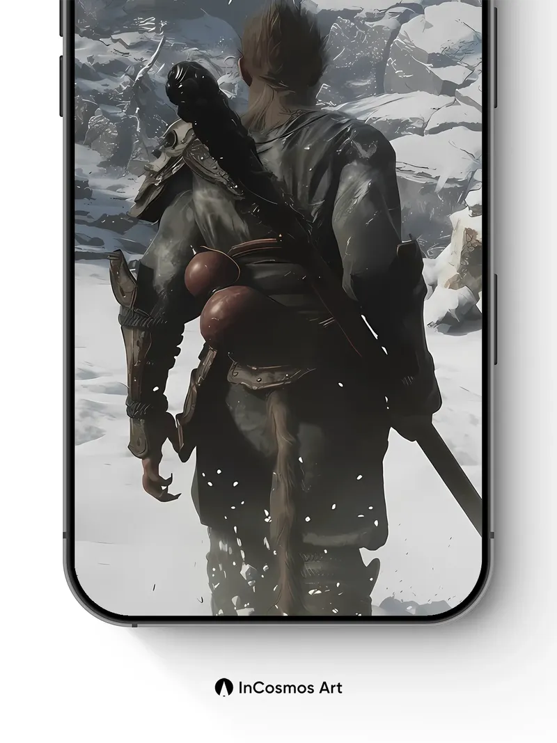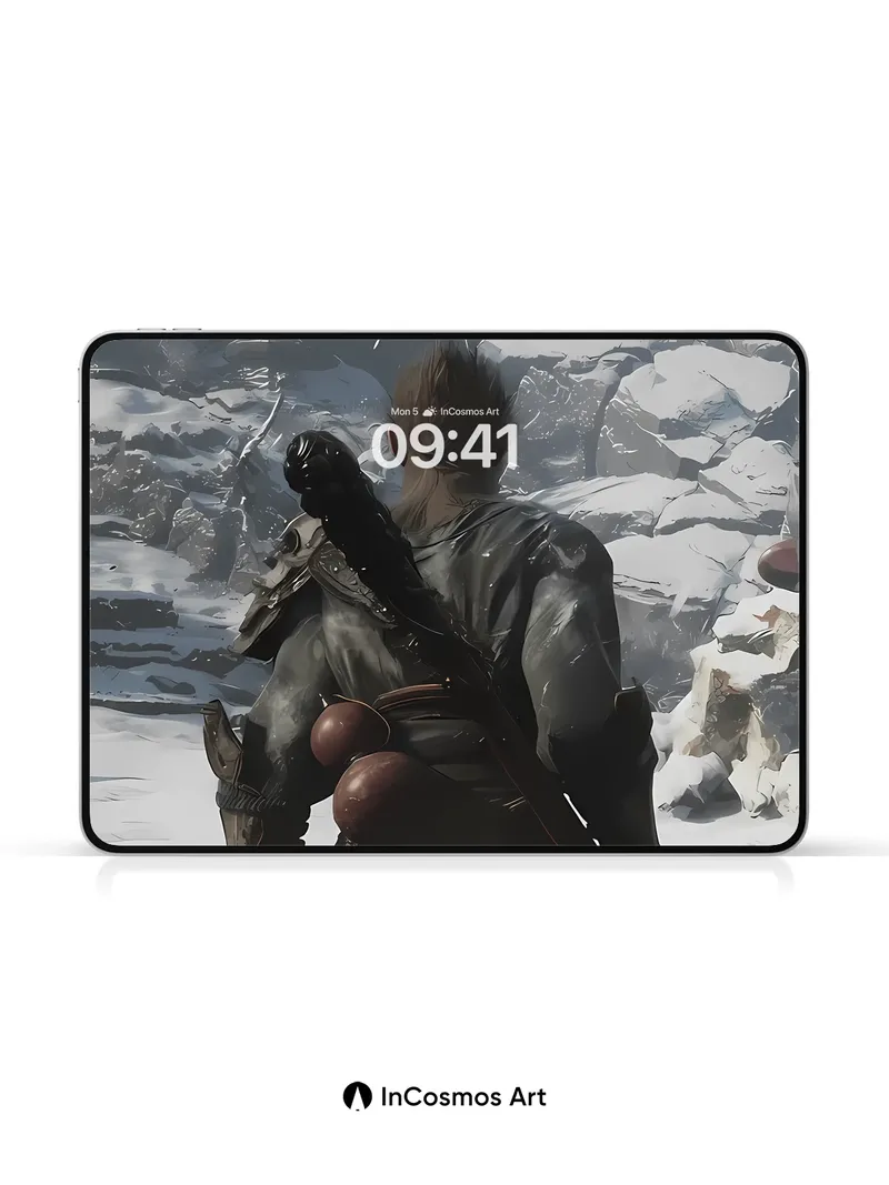 Frostbound Warrior Wallpaper with Snowfall Echo