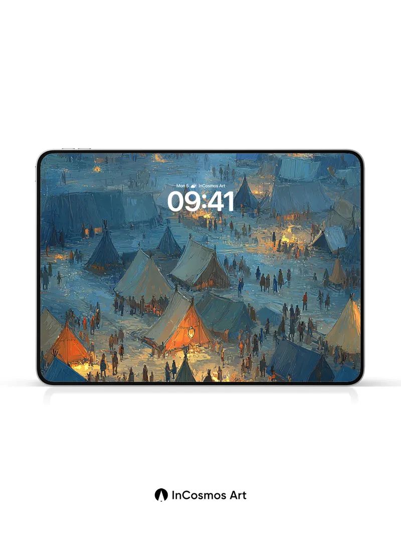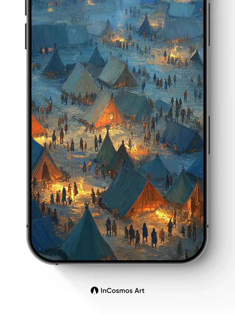 Frozen Campfire Glow Wallpaper with Whispering Tents