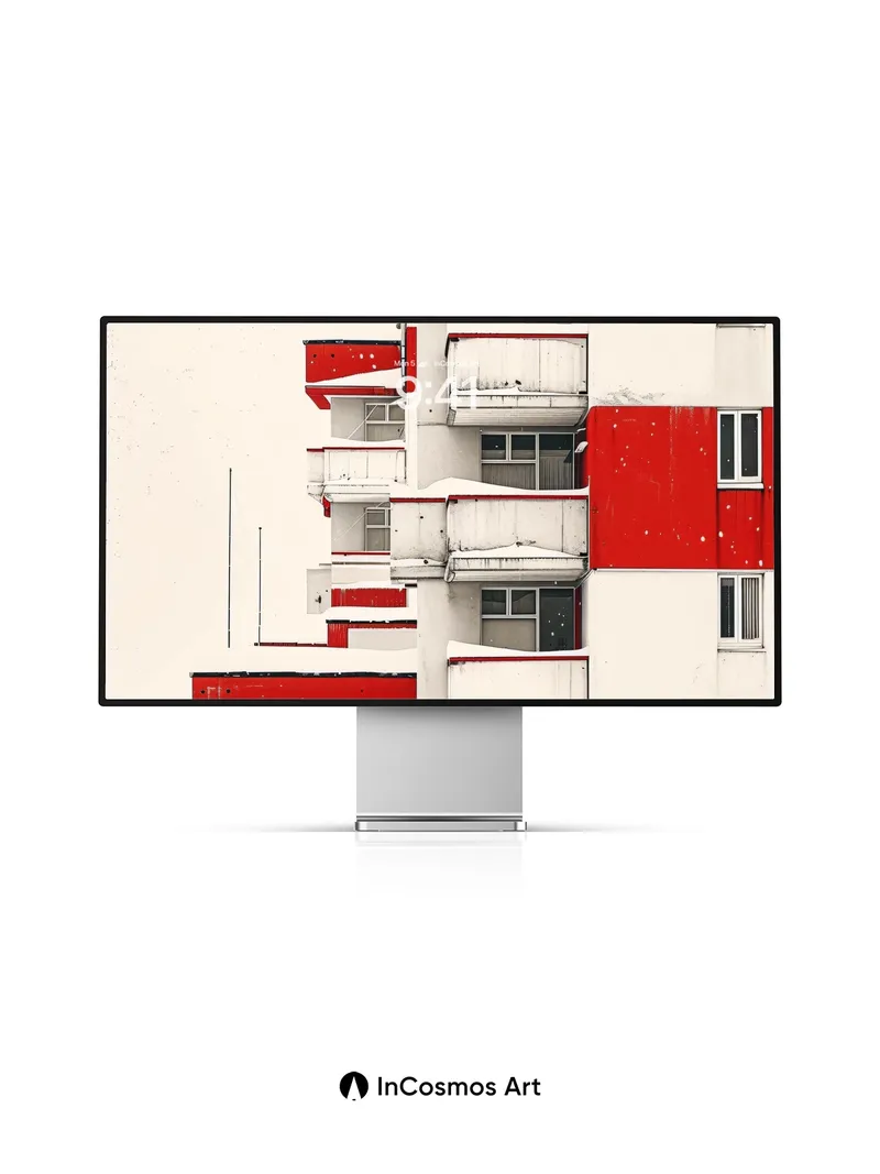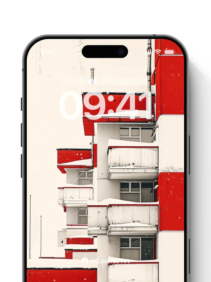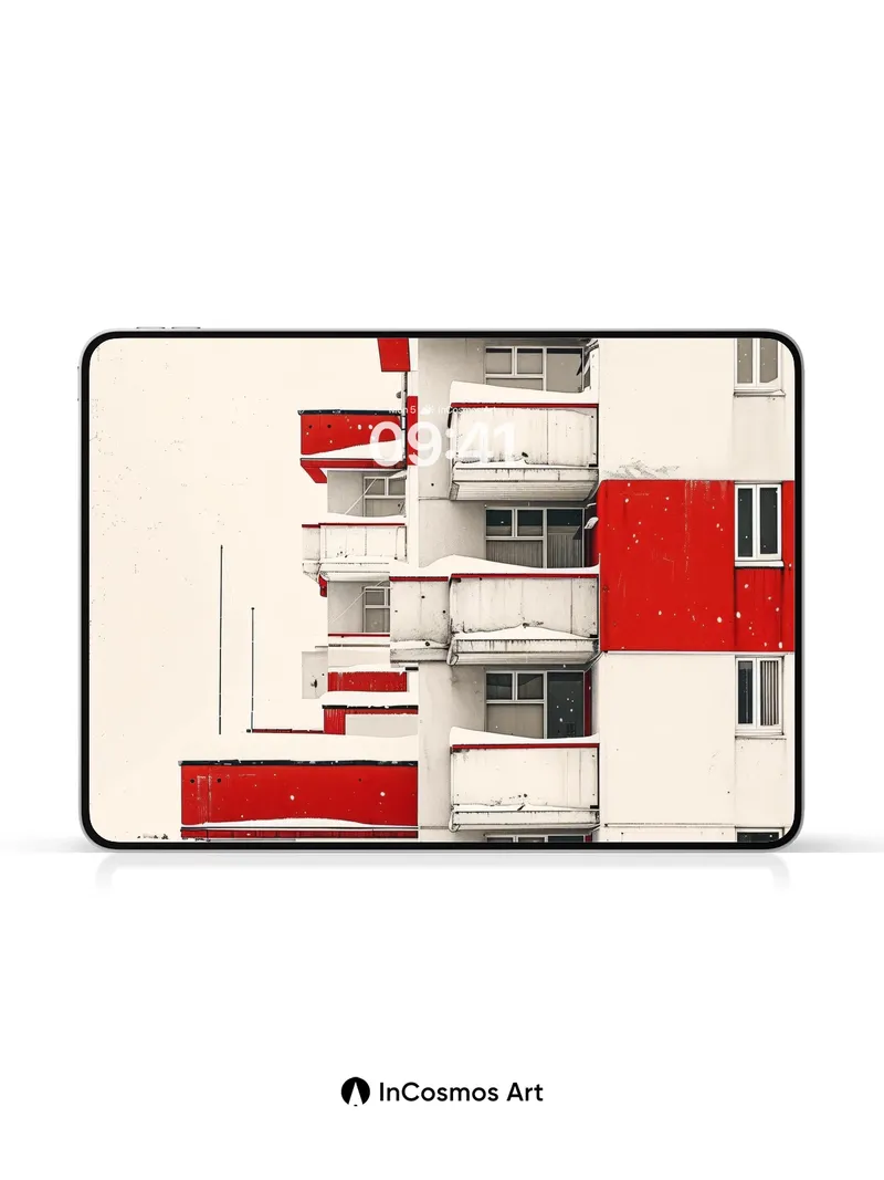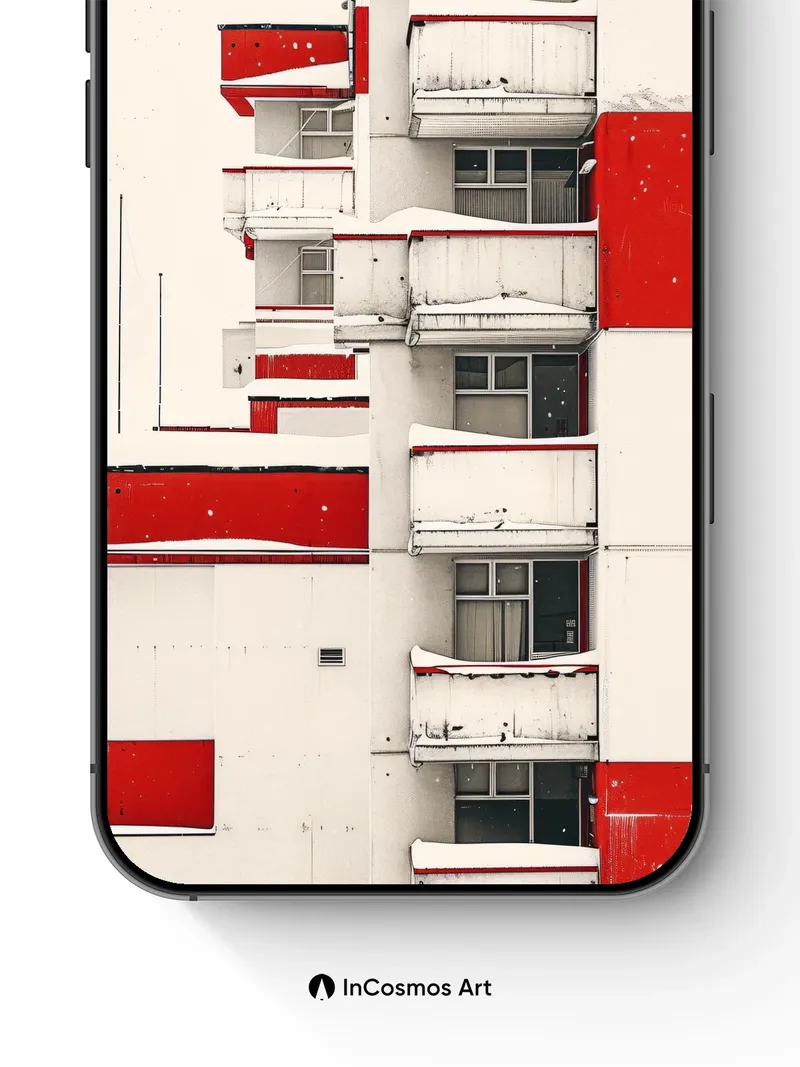 Frozen Geometry Wallpaper with Snow-Covered Balconies