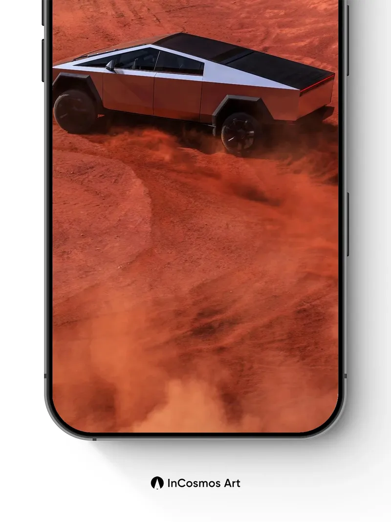 Debug page_description: Did you know the Tesla Cybertruck’s angular design was inspired by the geometric precision of 1980s sci-fi aesthetics? Dust spirals like liquid fire around its chrome edges, where light crawls over sharp planes and shadows carve deep trenches in the rust-colored dunes. You’re not just watching a vehicle—you’re witnessing a machine that breathes through sandstorms, its cold metal skin glowing under an alien sun. Share this with your best friend. Send this to your love and swap a matching set. What if tomorrow’s roads were made of memory?