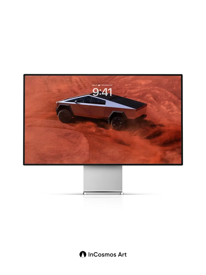 Debug product.metafields.custom.desc: Did you know the Tesla Cybertruck’s angular design was inspired by the geometric precision of 1980s sci-fi aesthetics? Dust spirals like liquid fire around its chrome edges, where light crawls over sharp planes and shadows carve deep trenches in the rust-colored dunes. You’re not just watching a vehicle—you’re witnessing a machine that breathes through sandstorms, its cold metal skin glowing under an alien sun.