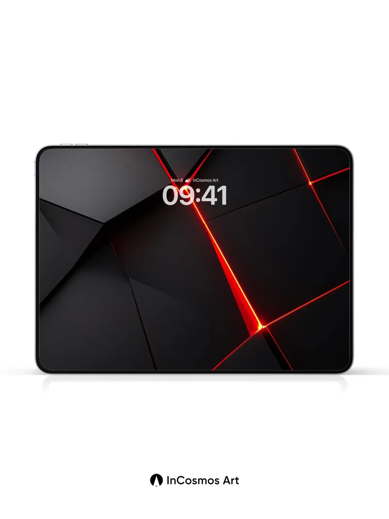 Debug product.metafields.custom.desc: Did you know that red light can penetrate deeper into the human eye than other colors, creating a sense of urgency and focus? Here, it crawls along fractured planes like blood through darkened circuitry, each seam glowing with electric precision. The black panels breathe with tension, as if ready to unfold into another dimension—cold, sleek, and alive with silent power.