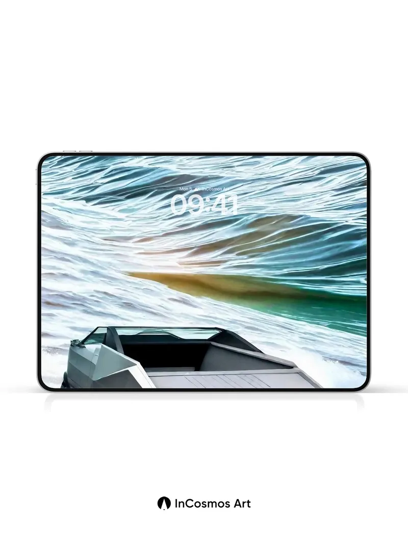 Debug product.metafields.custom.desc: Did you know the first amphibious car was patented in 1932? Here, a sleek geometric vessel glides across waves like a dream made of steel and sunlight, its sharp edges catching the golden hour’s breath. The ocean swells beneath it not as water but as liquid glass, shimmering with electric blues and molten gold, while the sky burns into twilight—each wave a brushstroke of motion frozen in time.