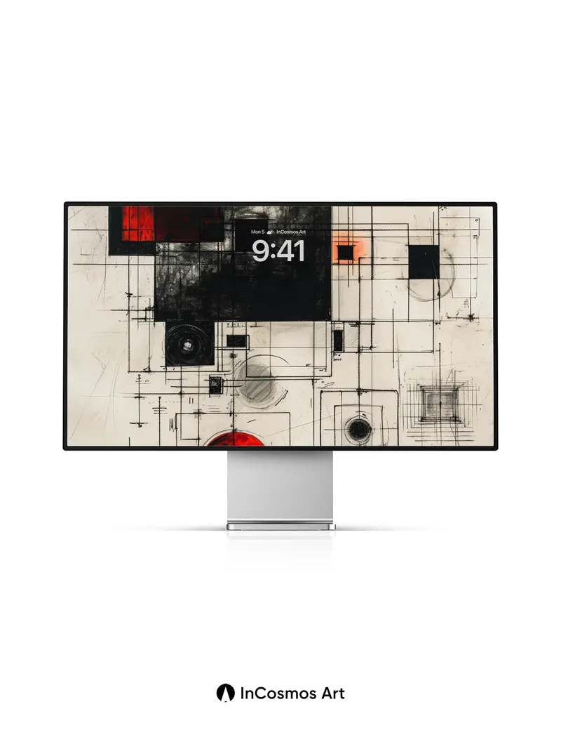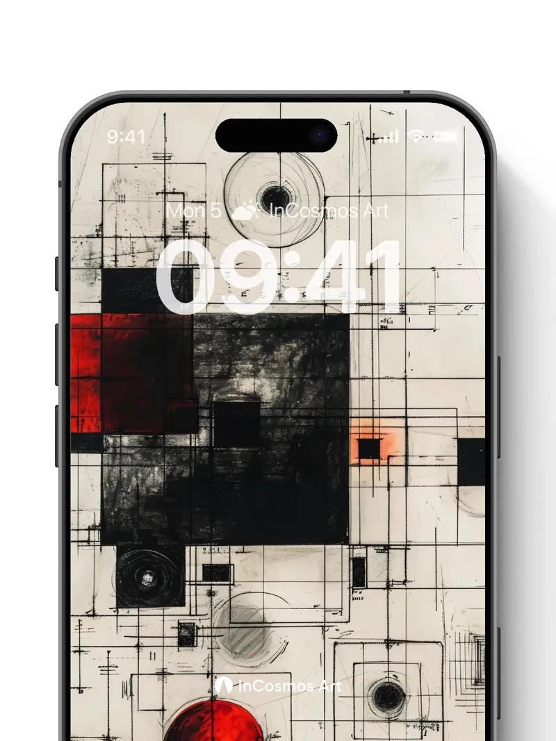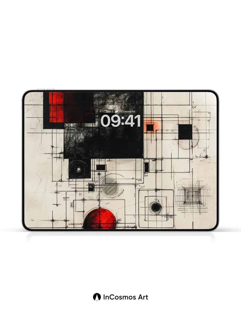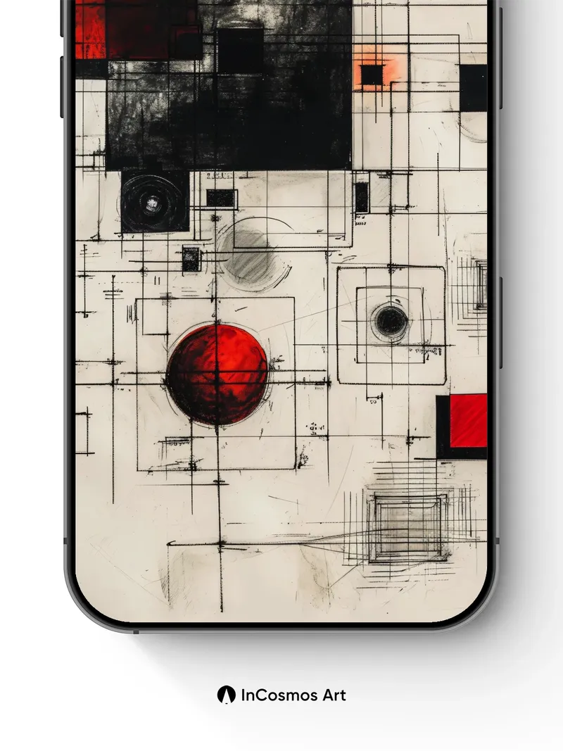 Debug page_description: Did you know early 20th-century constructivists used precise grids to map emotional energy? Here, charcoal lines etch a rhythm across aged parchment, where crimson spheres pulse like distant stars trapped in circuitry. The red isn’t just color—it’s a heartbeat beneath the architecture, vibrating through intersecting squares and spirals as if time itself were being recalibrated. Share this with your best friend. Send this to your love and swap a matching set. What if every wall could whisper the blueprint of a universe yet to be born?