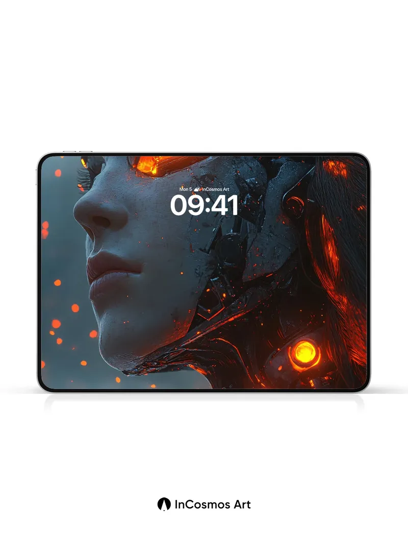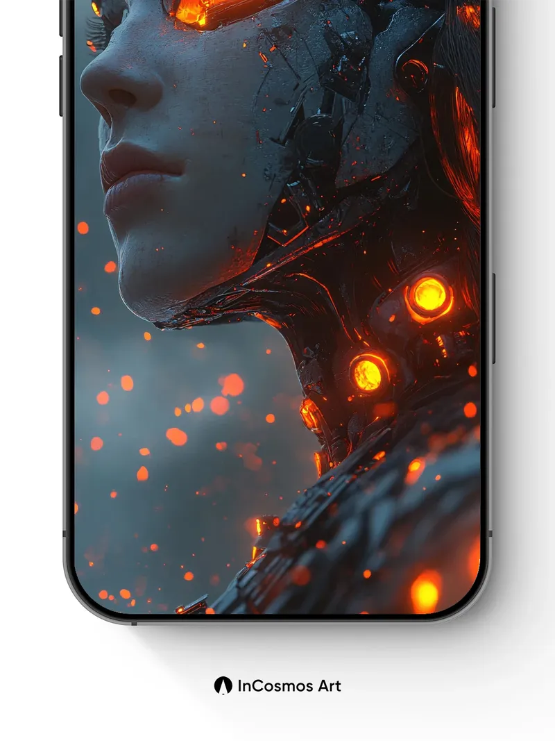 Futuristic Ember Wallpaper with Glowing Circuitry