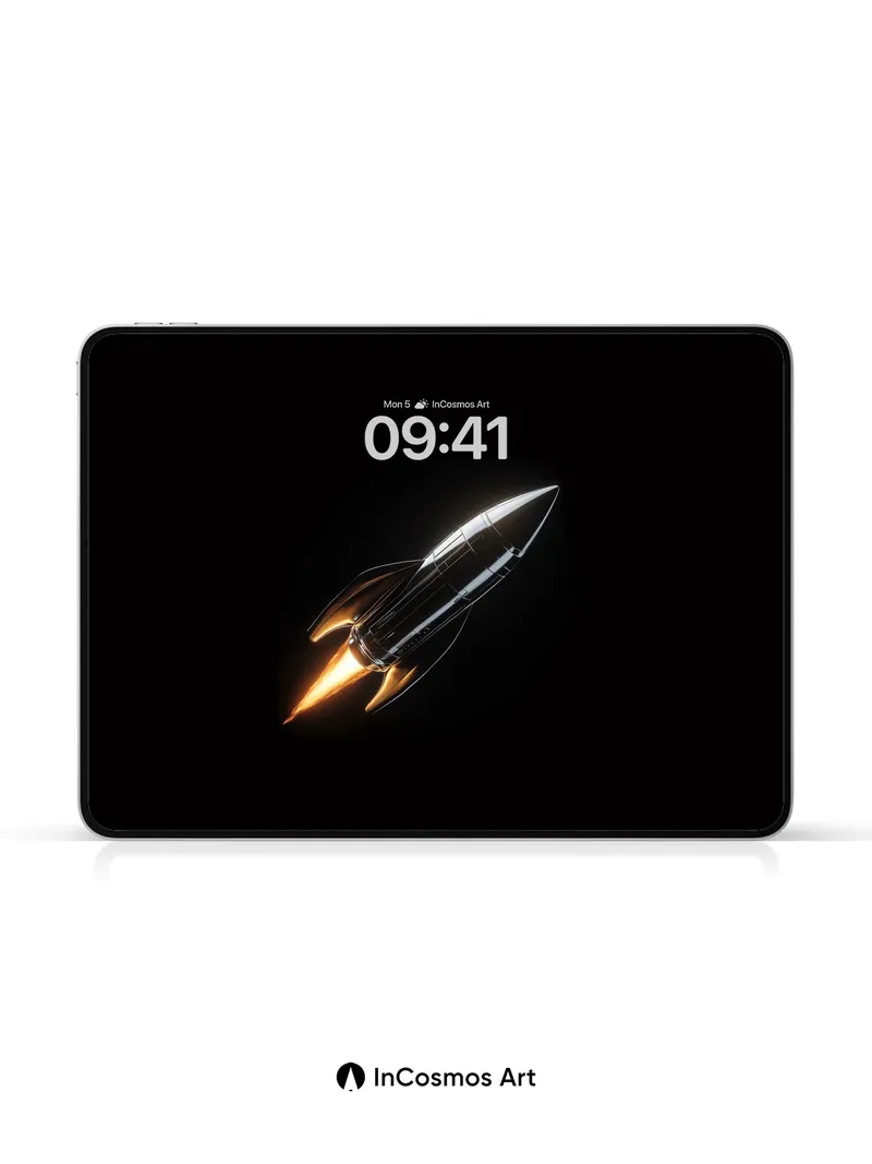 Futuristic Flame Wallpaper with Sleek Rocket Design