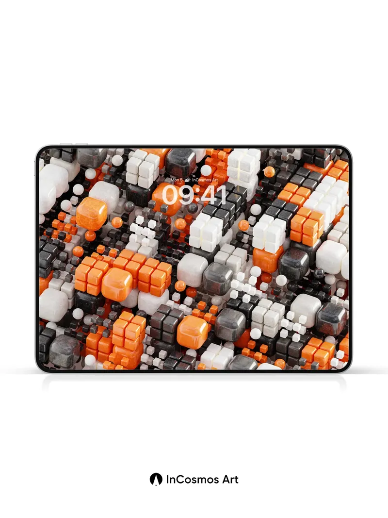 Futuristic Mosaic Wallpaper with Glowing Cubes