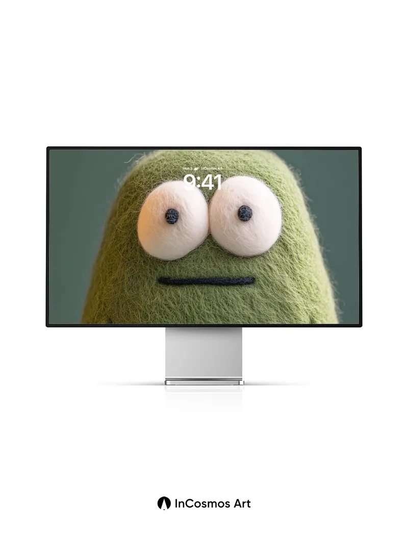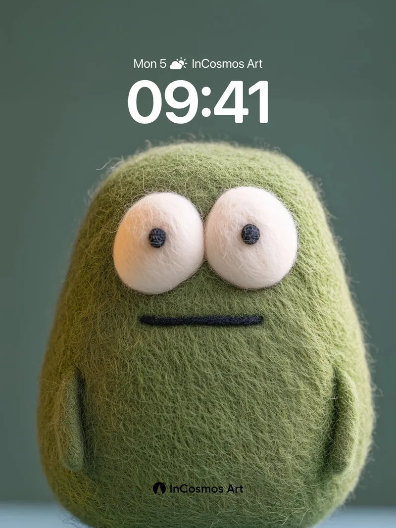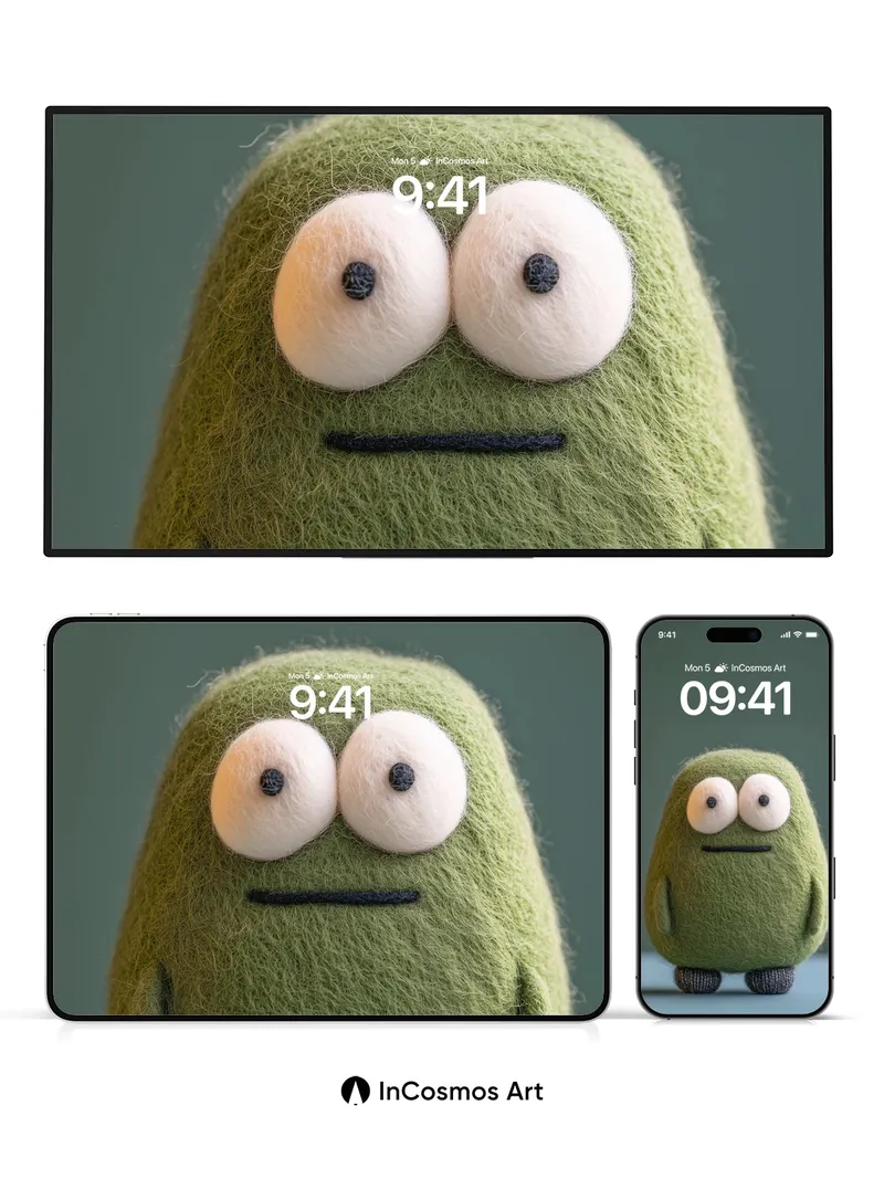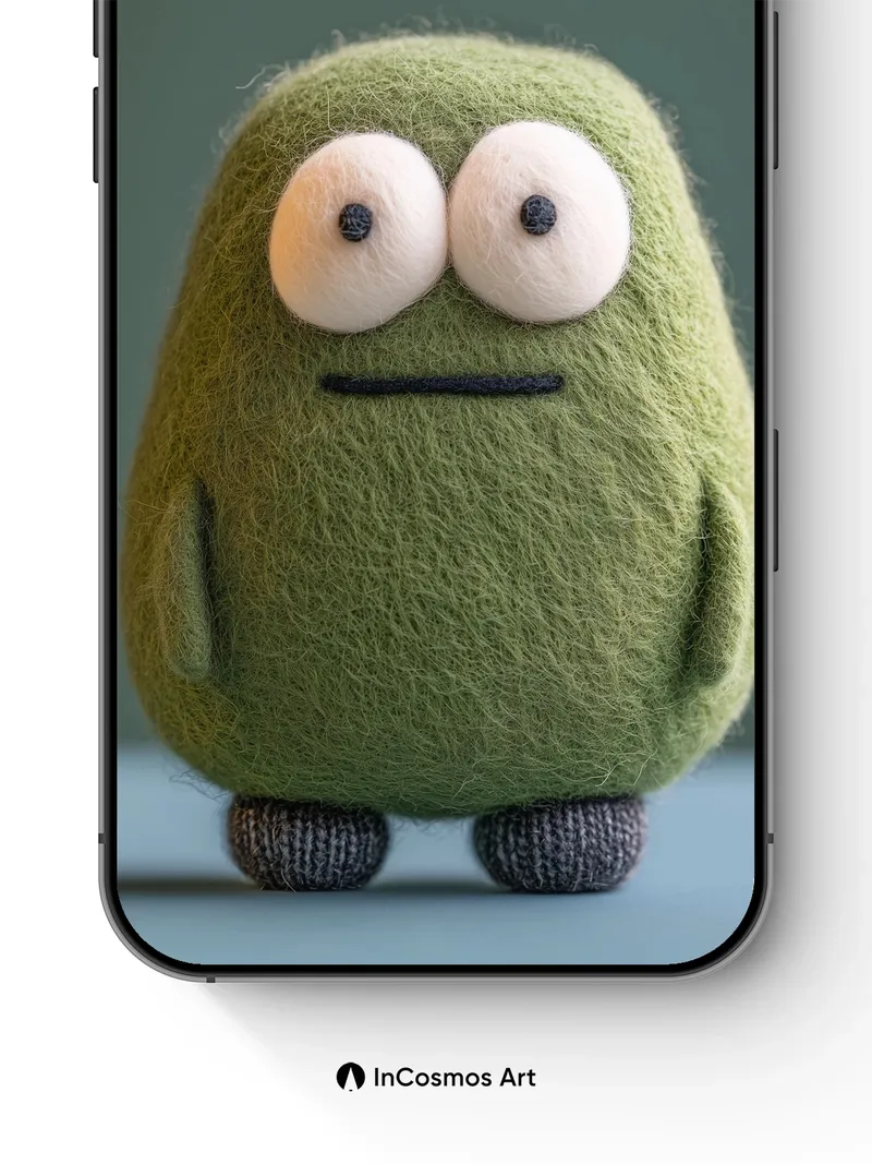 Fuzzy Green Creature Wallpaper with Knitted Feet