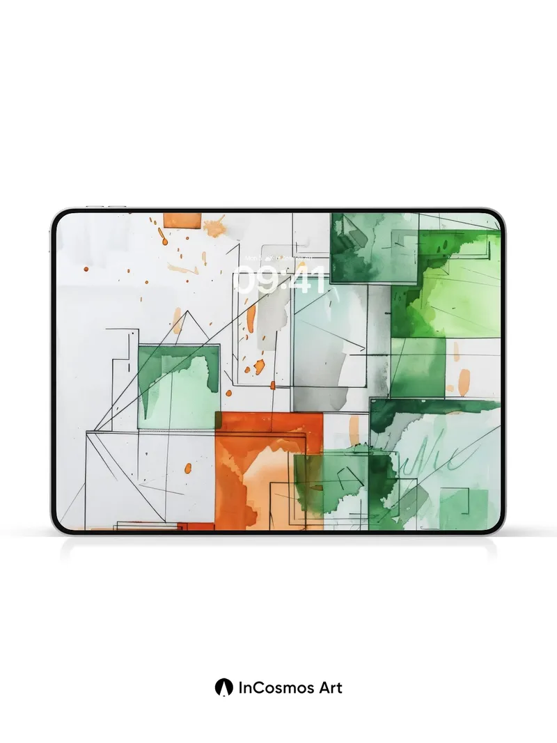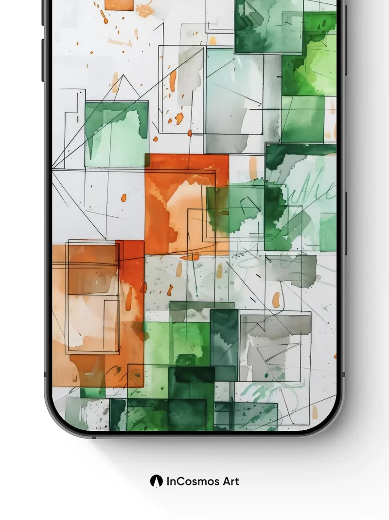 Debug page_description: Did you know watercolor pigments can bleed through paper like memories fading into the next breath? Here, translucent squares of emerald and rust float in a grid of graphite lines, each edge dissolving into misty gradients as if drawn by a hand that forgets its own shape. The composition hums with quiet tension—structured yet fluid, precise yet dreamlike—as if architecture were dreaming of becoming a forest. Share this with your best friend. Send this to your love and swap a matching set. What if every wall you touched could remember the way light fell on it?