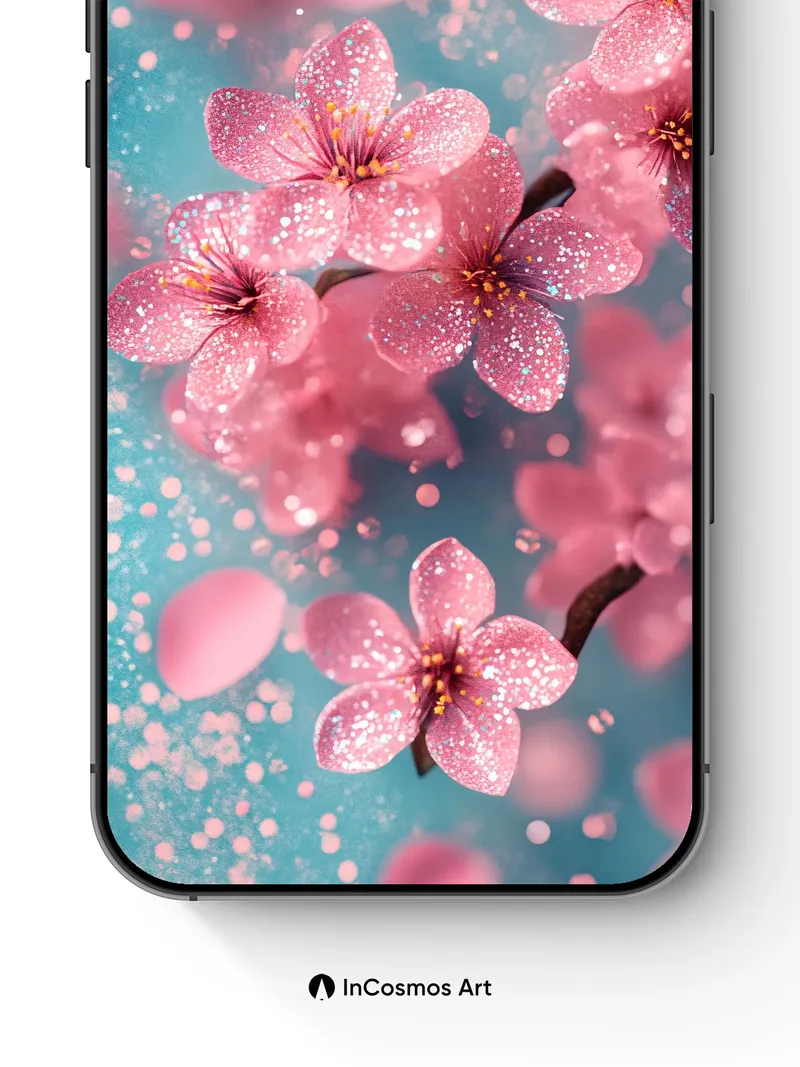 Did you know cherry blossoms in Japan are traditionally seen as fleeting symbols of life’s impermanence? Here, each petal shimmers with stardust-like particles that seem to breathe light into the turquoise void. The soft glow crawls across delicate pink surfaces like dawn over a still lake, while floating fragments dance in slow motion—inviting you to pause and remember how beauty can feel both ephemeral and eternal.