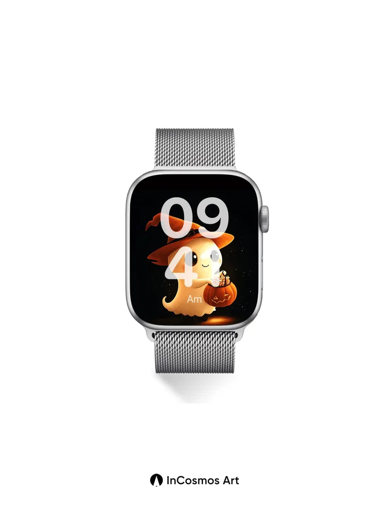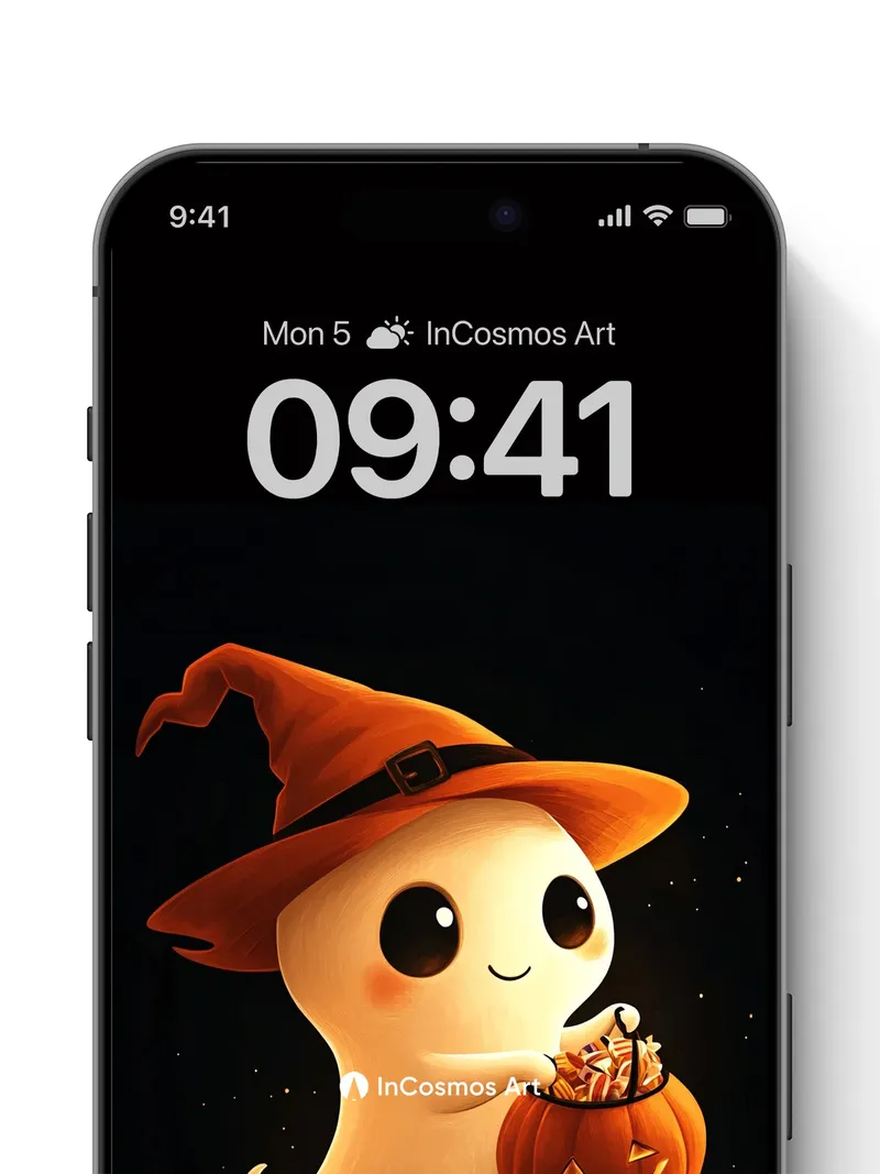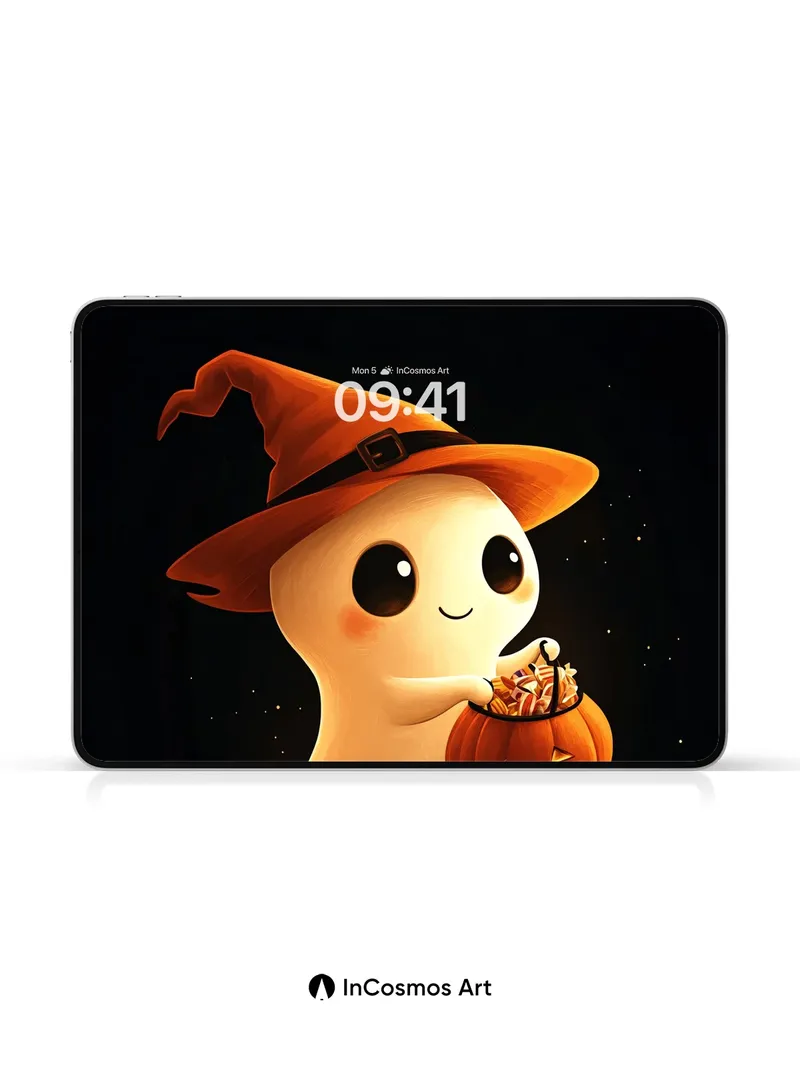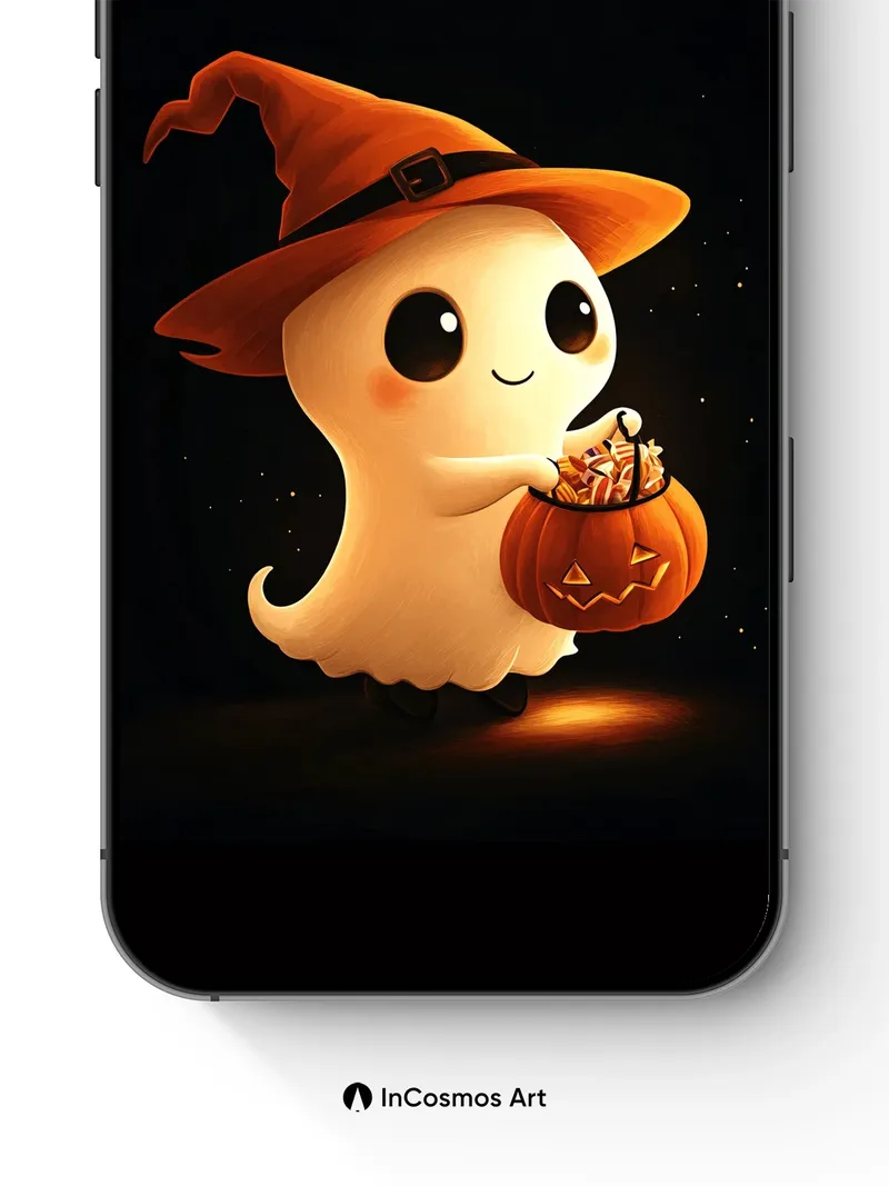 Glowing Ghost Halloween Wallpaper with Witch Hat Charm