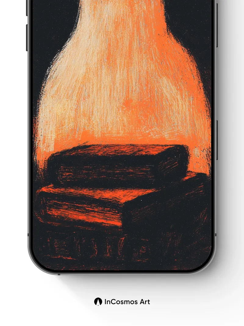 Debug page_description: Did you know that in 19th-century folklore, ghosts were believed to appear as translucent figures drawn from the warmth of candlelight? This spectral form breathes through textured orange hues, its soft glow pulsing like a slow heartbeat over stacked books, their edges worn and inked with ancient secrets. The darkness doesn’t swallow it—instead, it cradles the ghost like a whispered story, making the unseen feel deeply familiar. Share this with your best friend. Send this to your love and swap a matching set. What if every book you read left behind a ghost of its own?